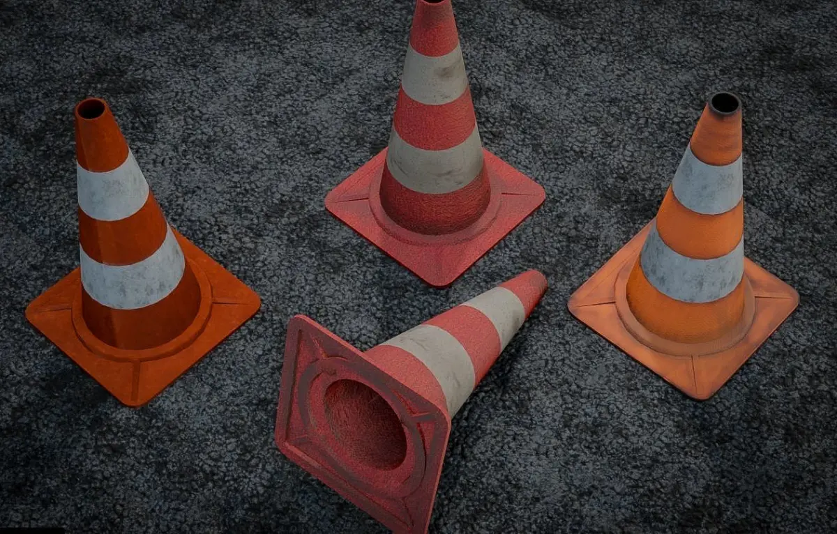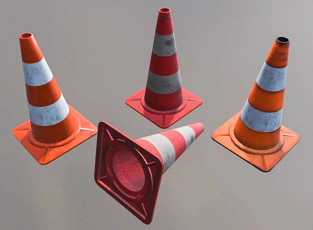 4 traffic cones with 3 different types of textures, also available to buy as a single item for less.