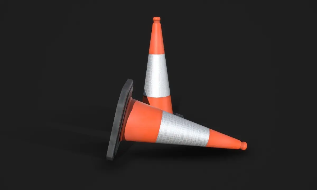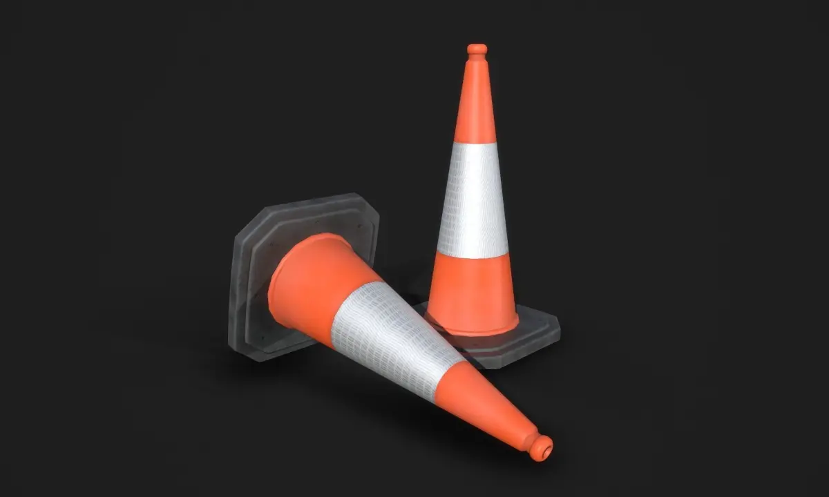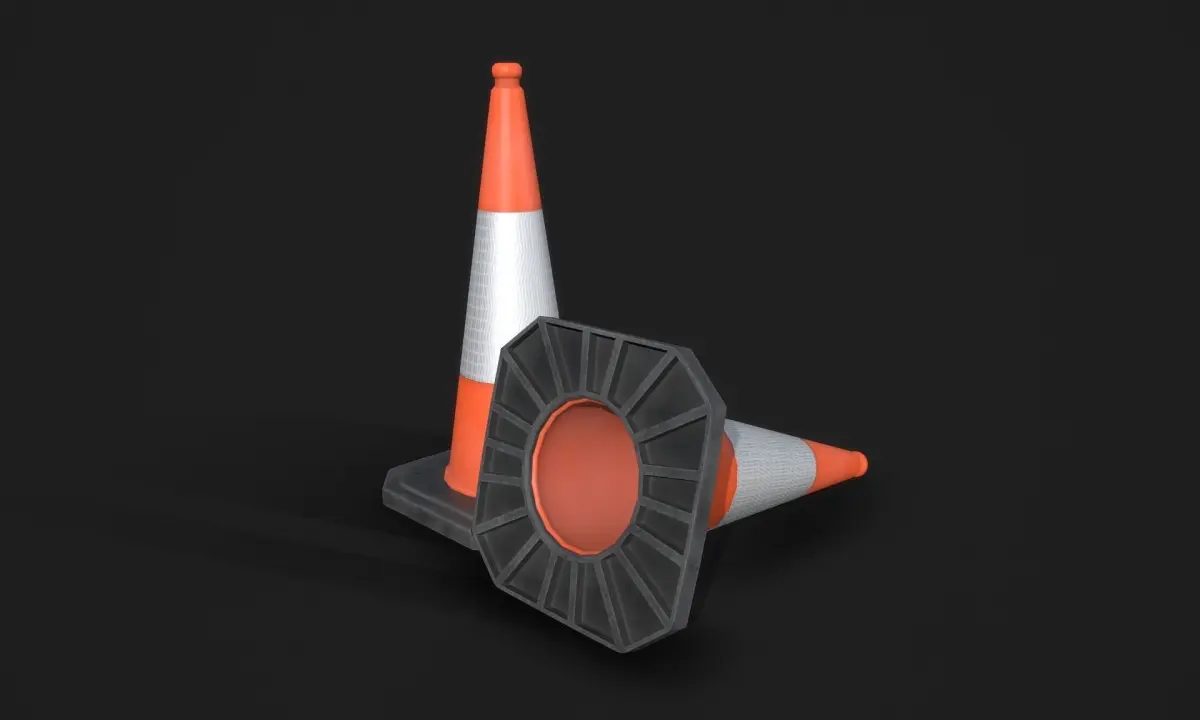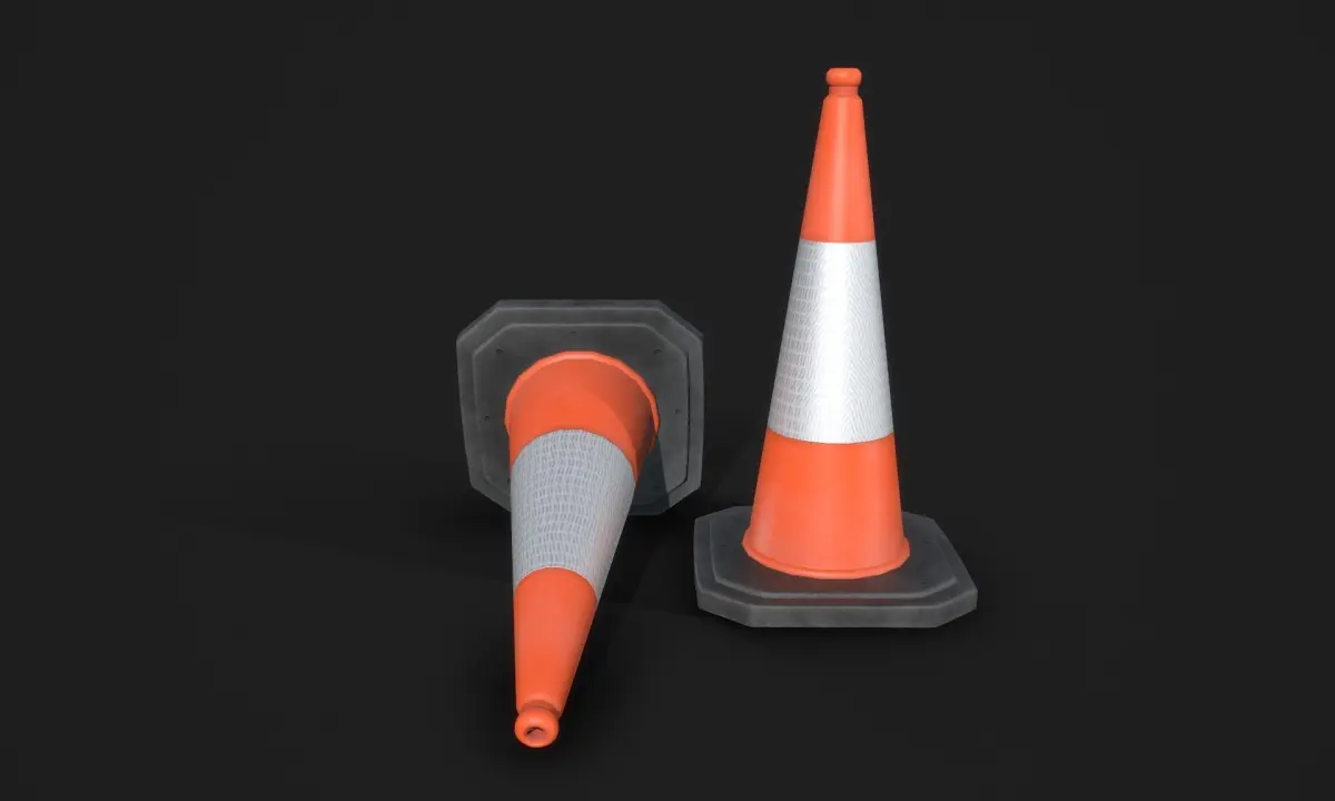Real time, Game ready, Traffic cone, also known as a construction cone, construction cone, safety cone or road cone.