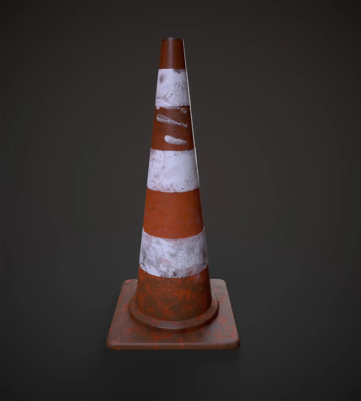 The scratched stylized low-poly road cone , game-ready with pbr textures created in substance painter . Suitable for visualizing city scenes and architecture.