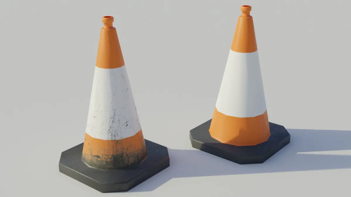 A low poly traffic cone with 252 faces. The traffic cone comes with 4K pbr textures in PNG format (diffuse, roughness and normal maps) with 2 varietys of diffuse maps, one clean and one dirty/weathered.