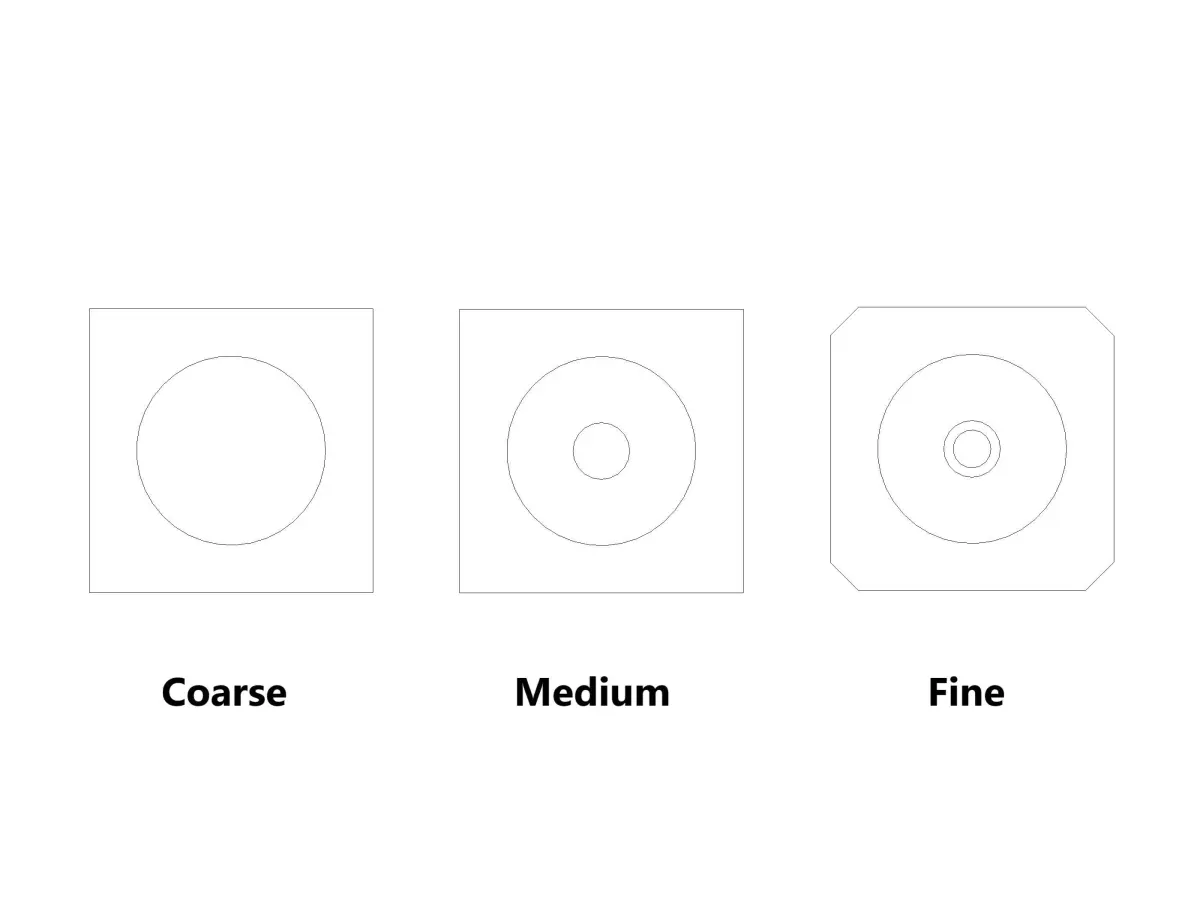 The object was modelled with different geometries for Fine, Medium and Coarse detail levels.