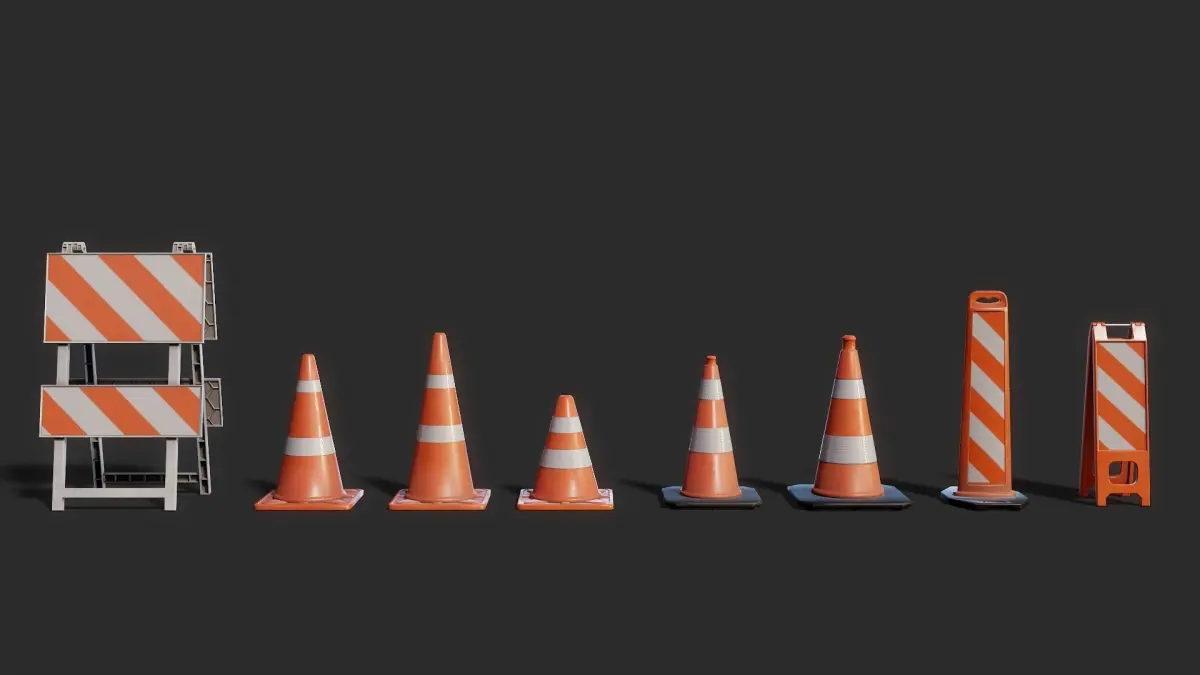 8 type of traffic cones objects Include clean textures and materials