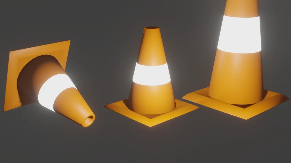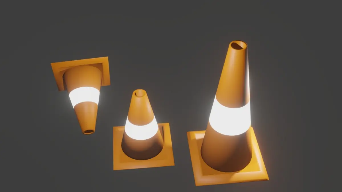 Simple, low poly traffic cones. Great for use as scene and game props.