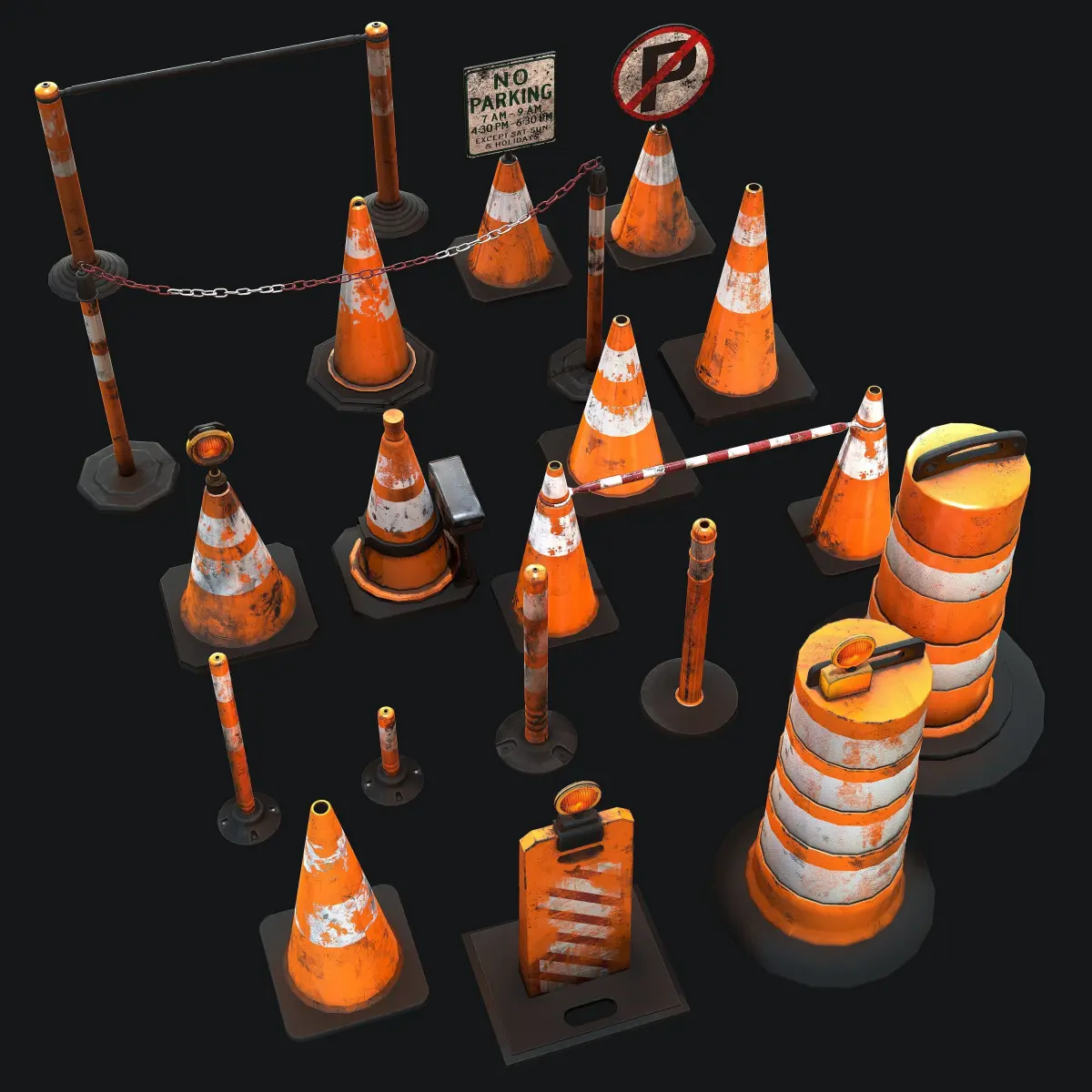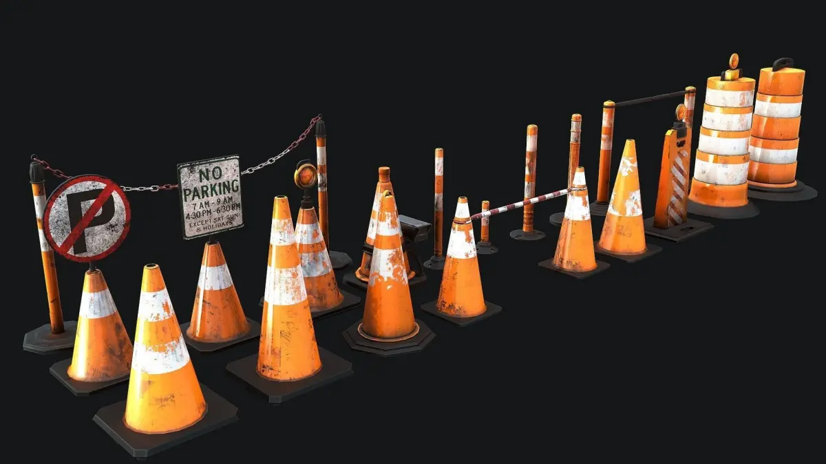 Traffic Cones Set it's a lowpoly game ready model with unwrapped UVs and PBR textures.