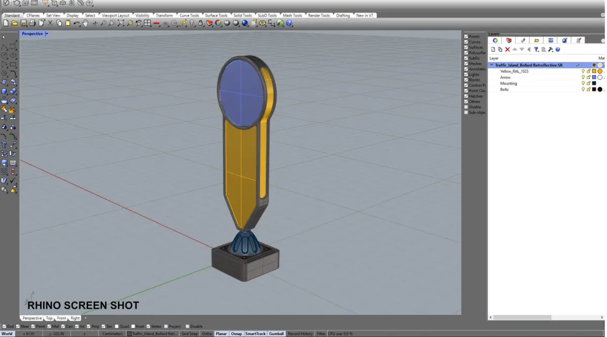 The Rhino 7/V-ray Model is archived with it's packed V-ray materials & ready to go once unzipped. (Traffic_Island_Bollard_Rhino_Vray.zip)
