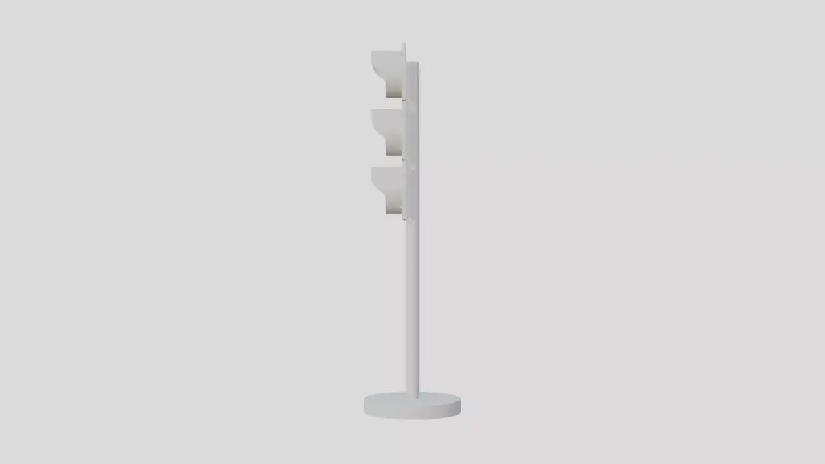 3D model of a standard traffic light, including a sturdy base, vertical pole, and light unit with lenses. Ideal for road scene visualization, urban environment rendering, and traffic simulation projects.