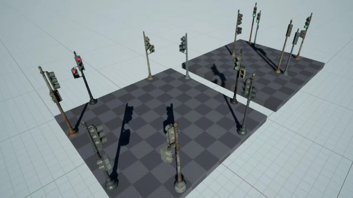 Includes Unreal Engine version which has fully animated traffic light materials, with modifyable duration including a working countdown. Unreal version has LODs down to 3k polys.
