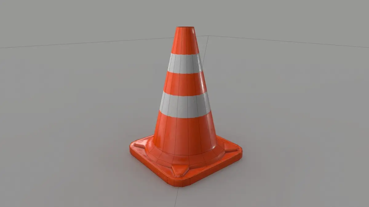 A low-poly road cone asset with great attention to detail and proper rendering.