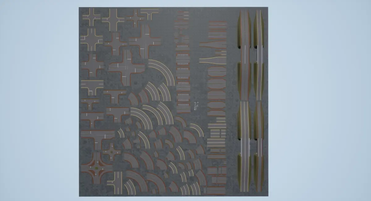 HIGHWAY with STREETS CONSTRUCTION ROADS 127 elements for any game or production of 3GB of contentThis is very accurate complete scene of highway with streets. Good mesh topology, very high resolution of road textures, detailed kerbs. There is also bonus scene with all elements separated, as base to create own roads construction