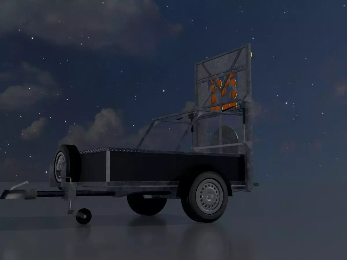 - Here is the 3D model of a mobile barrier sign (version 616-31) with left-hand illuminated arrow and dimensions of 2500 x 1700 mm.