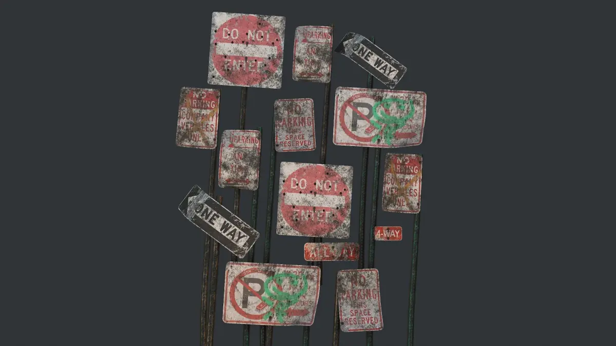 - Attached version: 26 objects / 24 sign with holder, 2 sign plate / 8992 poly, 9352 verts