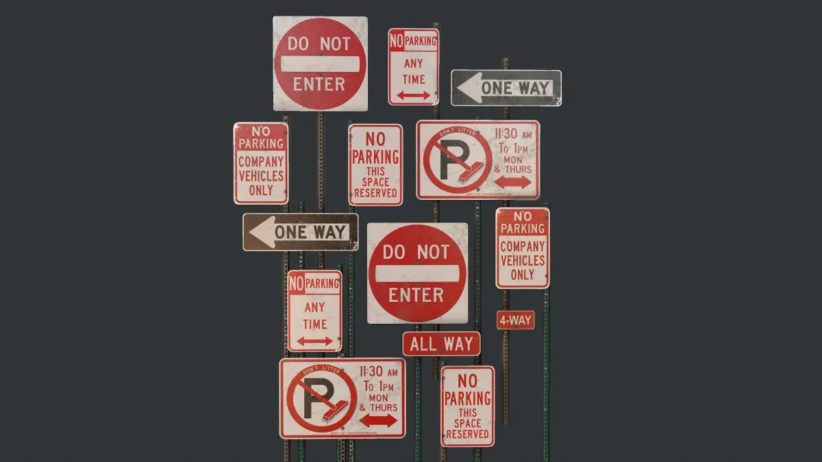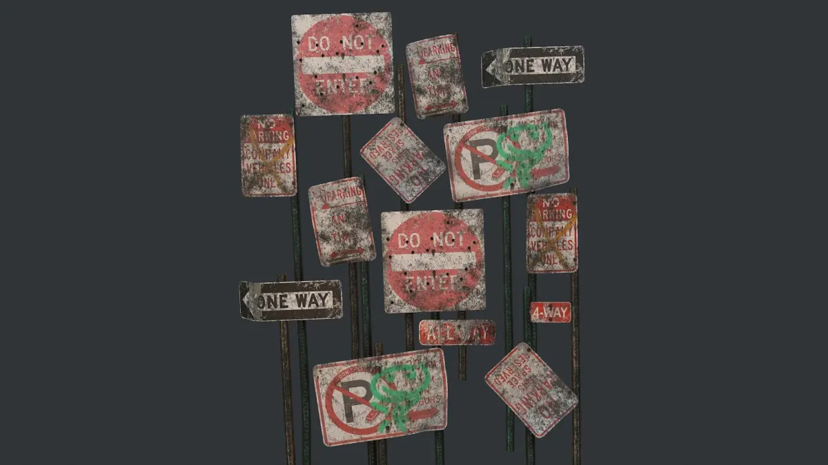 - Attached version: 26 objects / 24 sign with holder, 2 sign plate / 8992 poly, 9352 verts
