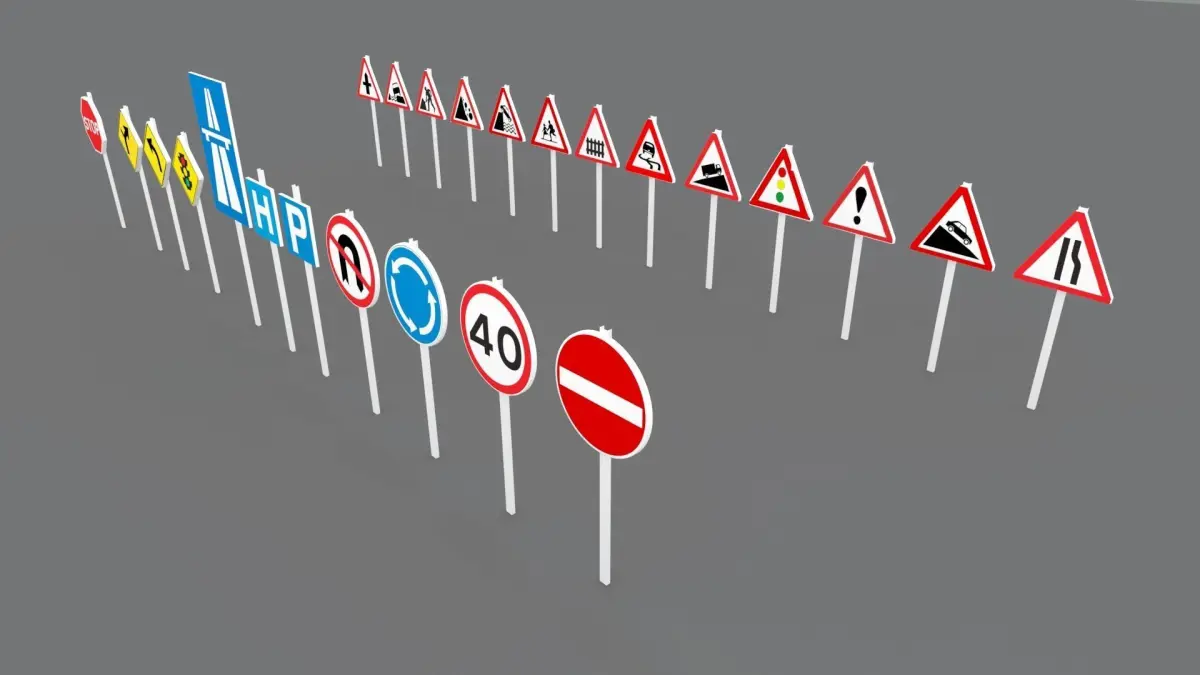 Traffic SignsHighly detailed model of street element design with all textures, shaders and materials. It is ready to use, just put it into your scene. MODEL blender and render cinema 4d and render obj dae fbx 3ds