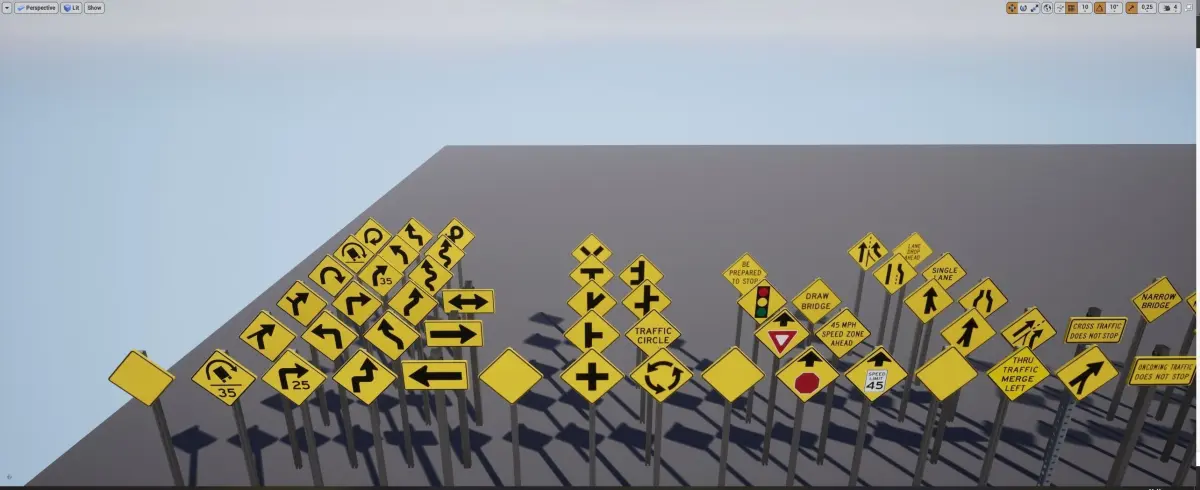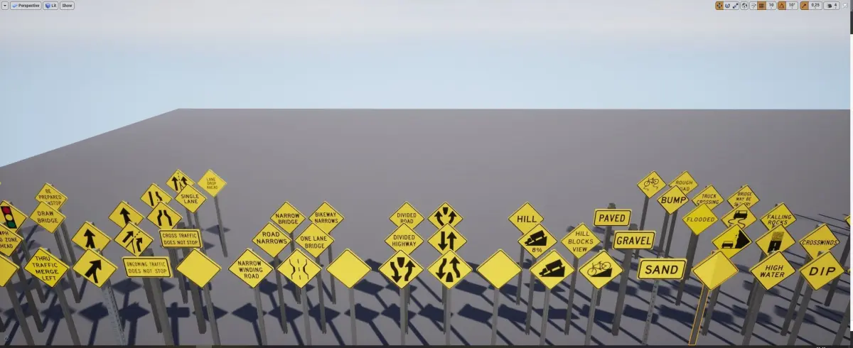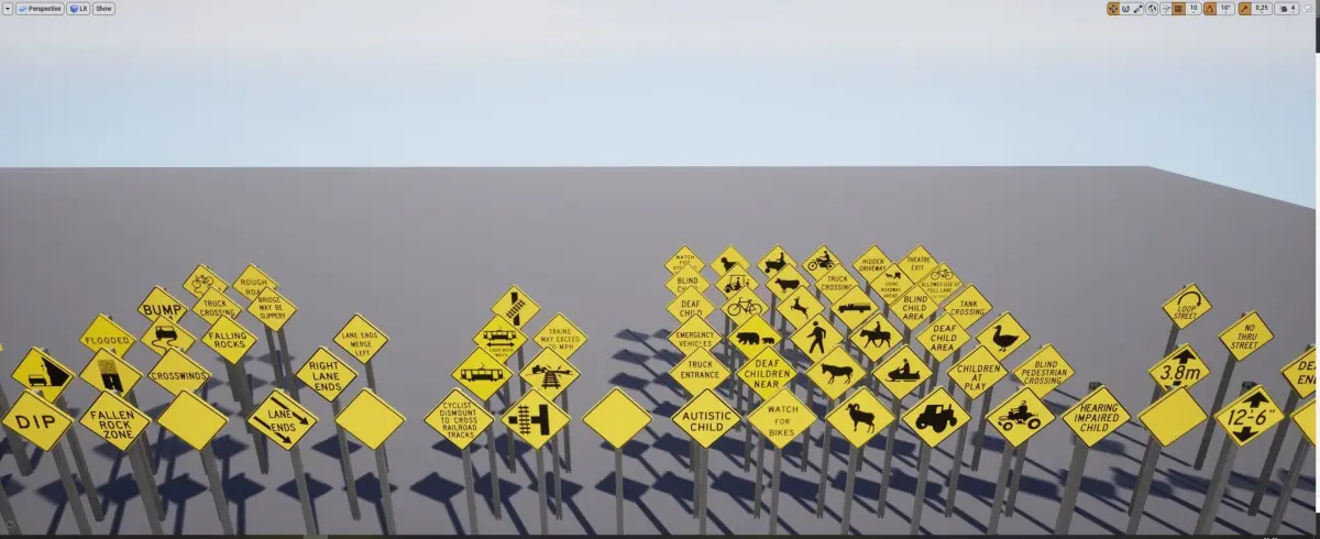 160 USA Regulatory traffic warning signs with textures, materials, and 6 interchangeable options for: Pole type and fixtures.Also included is a handy guide with the sign number and short discreption where it is used, for easy and correct usage.