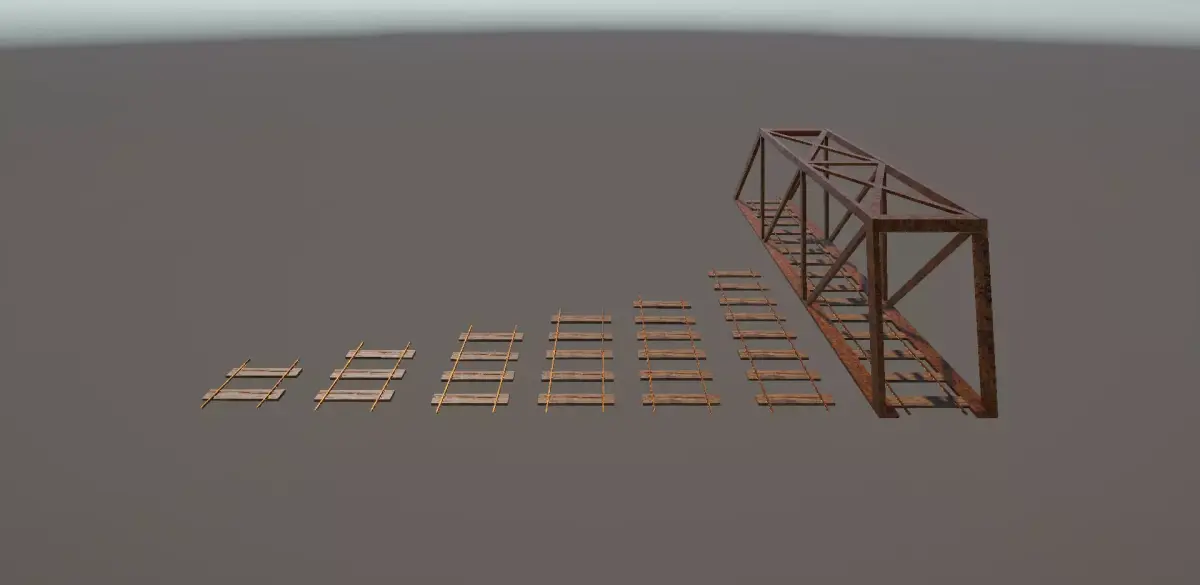 This Train kit is designed for modular usage and can be used for background or front and center accessories in projects, this kit includes straights, left and right curves, switches both both sides as well, rail crossings, and an end stop to close the track. This kit also includes a bridge, and several signs that can be used interchangeably along with emissive to light up those sections if needed. Textures included and lightmaps are created in order to bring in for easy integration.