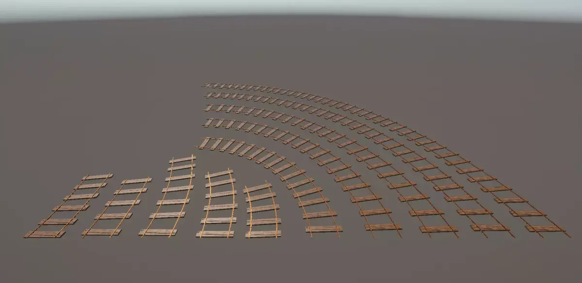 All included are the following.5 Straights5 Curves Left/Right5 Various Angled Curves Left/Right10 Left Switches10 Right Switches1 Cross1 End Stop3 Road Crossings1 Bridge33 Signs1 Rail Crossing Bar1 Wooden Plank1 Nail StudSeveral Premade Signs.