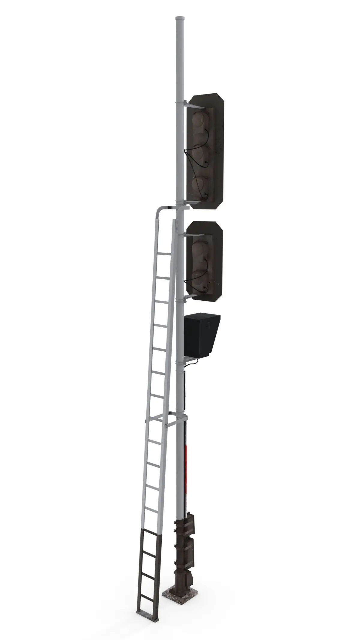 Railway traffic light 3d model built in Blender and rendered with Cycles, with PBR materials, Game-Ready.