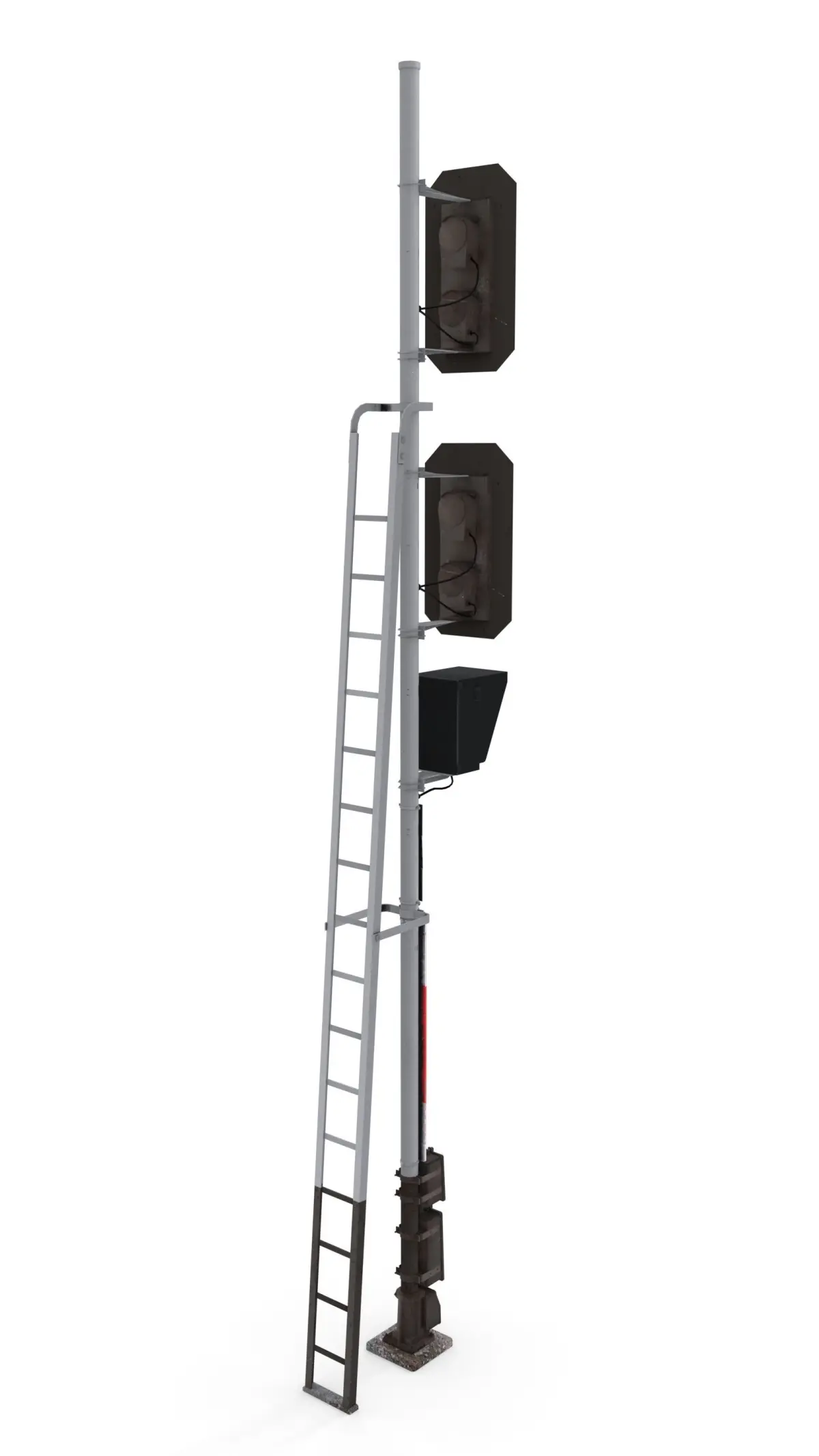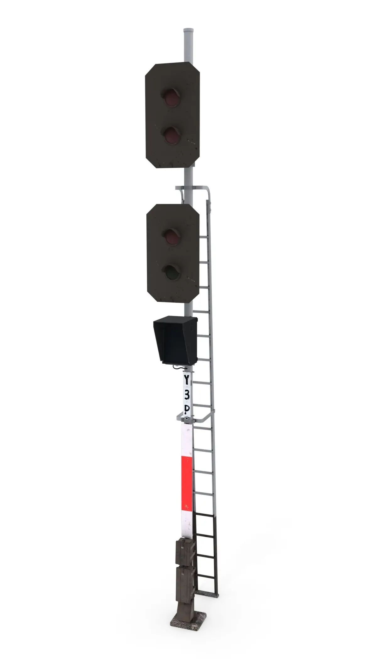 Railway traffic light 3d model built in Blender and rendered with Cycles, with PBR materials, Game-Ready.