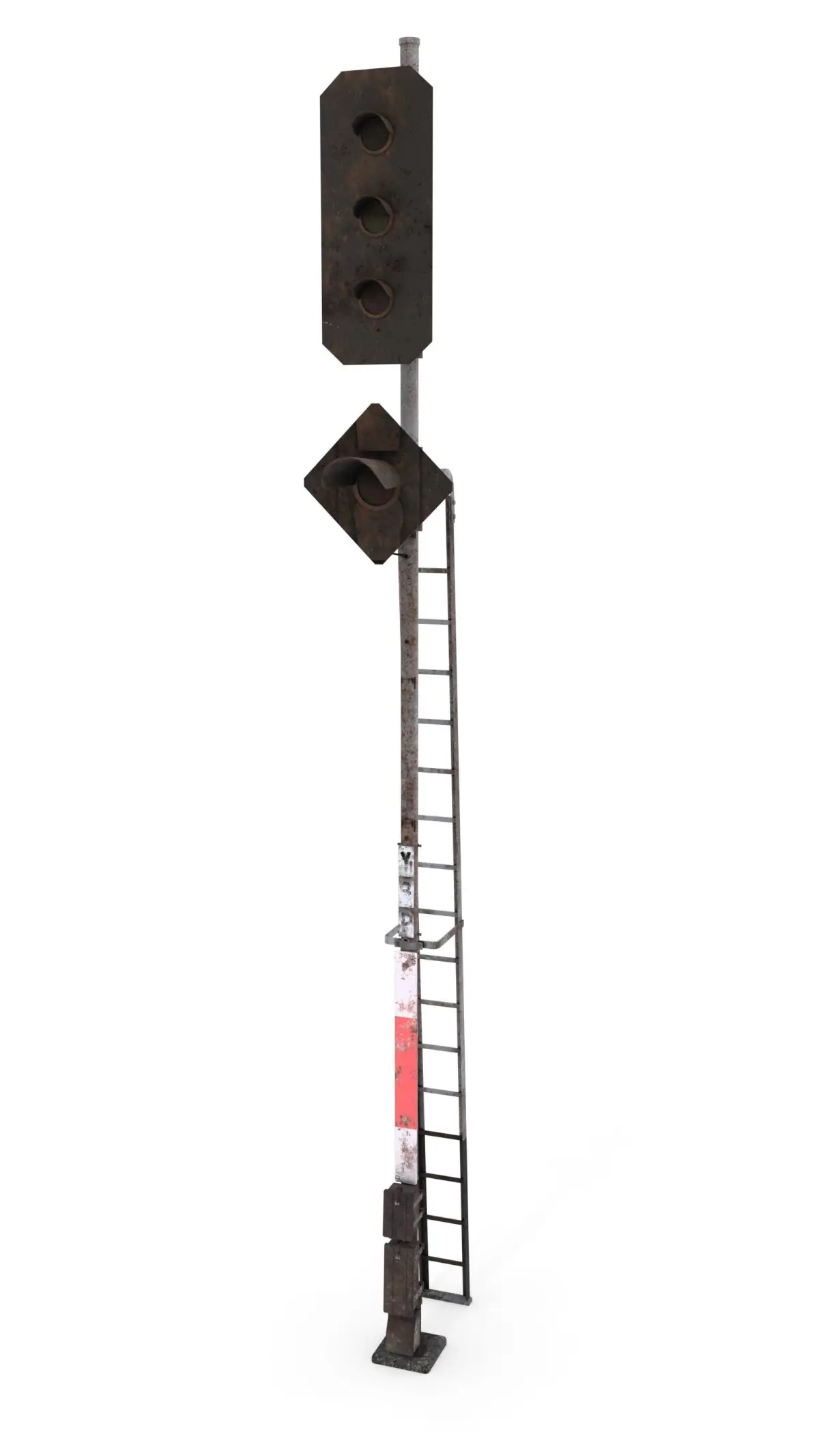Railway traffic light 3d model built in Blender and rendered with Cycles, with PBR materials, Game-Ready.