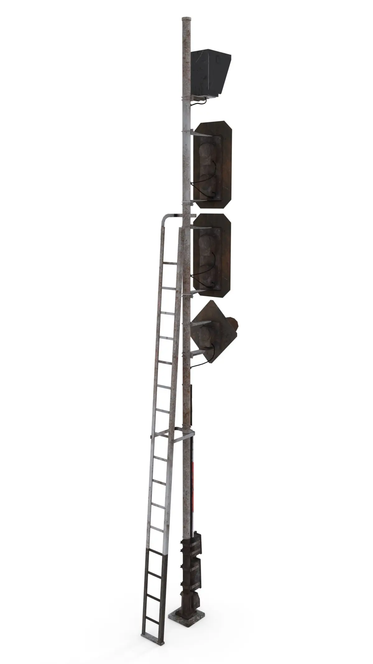 Railway traffic light 3d model built in Blender and rendered with Cycles, with PBR materials, Game-Ready.