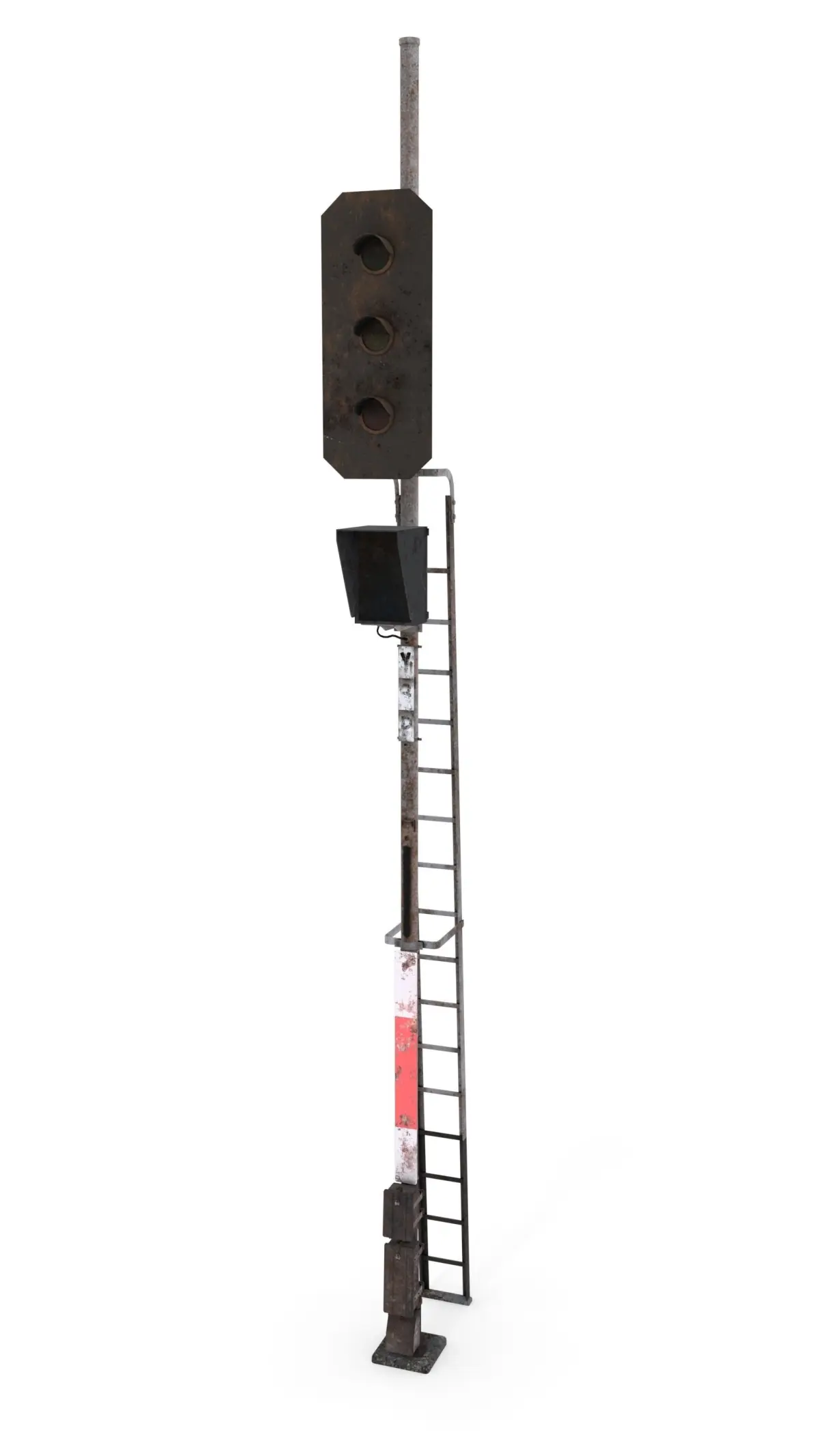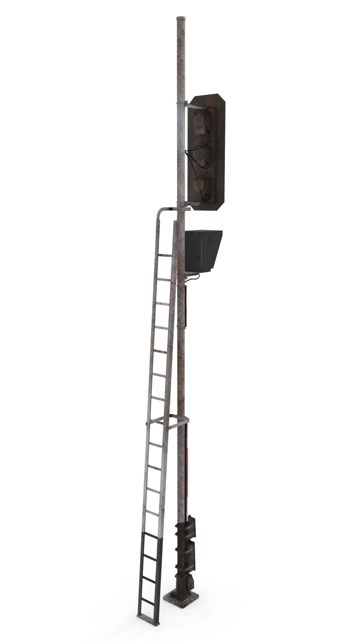 Railway traffic light 3d model built in Blender and rendered with Cycles, with PBR materials, Game-Ready.