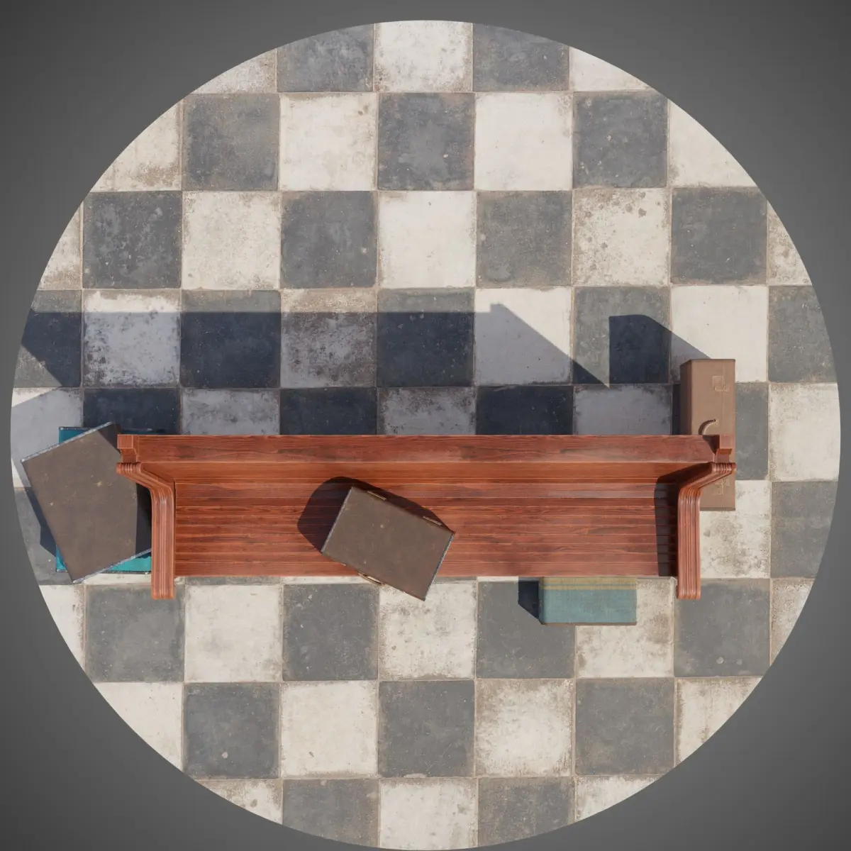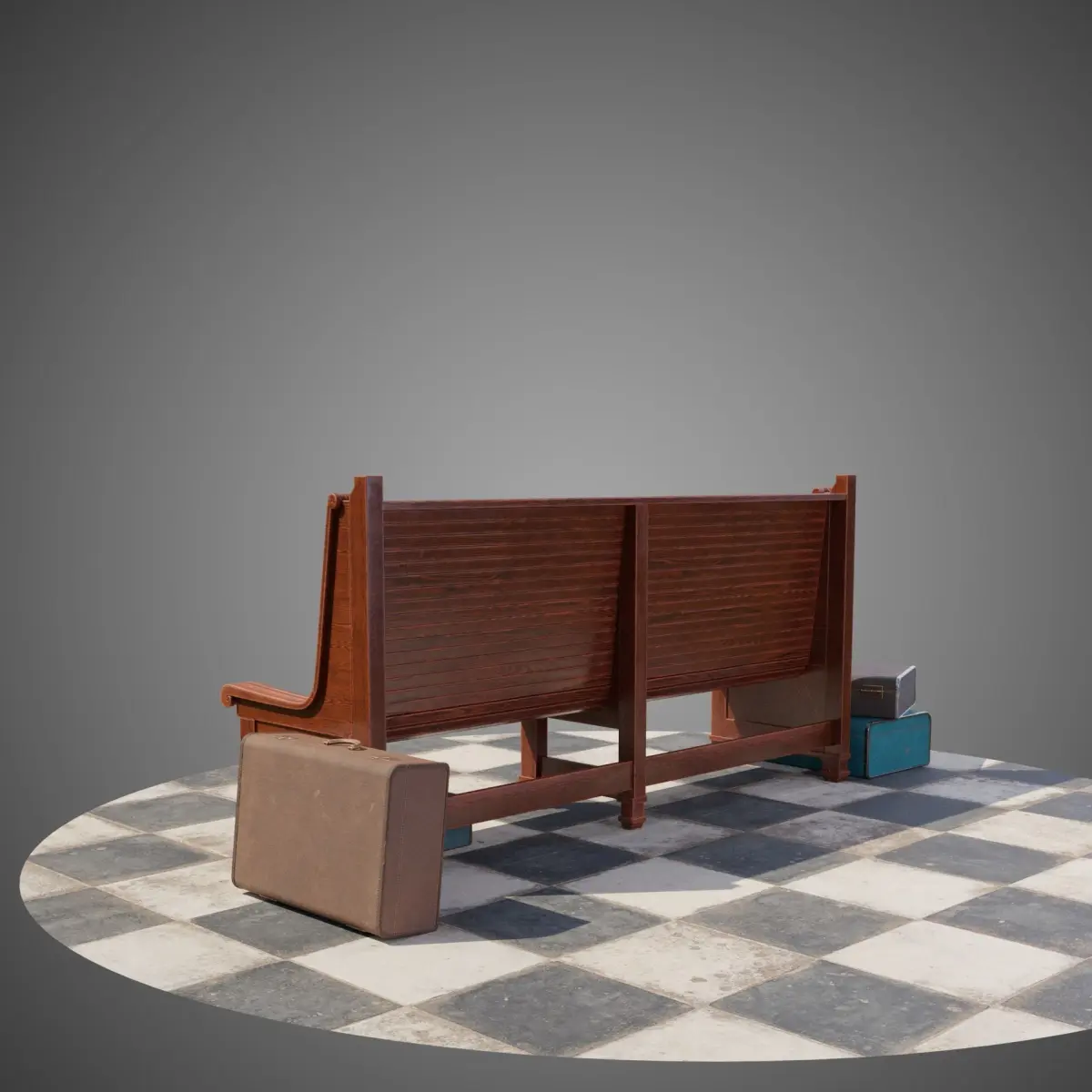 Trainstation bench inspired by the 1900's travelling images. Base model was made in Blender, and textures were made with Substance Painter. This bench is created out of 4 objects which form the bench composition. Objects are all parented to an Empty for easier use in the scene. Size of the composition is 217x64.5x106 cm, but if needed, you can create longer bench by using separated objects. No trunks included, they are sold separately.