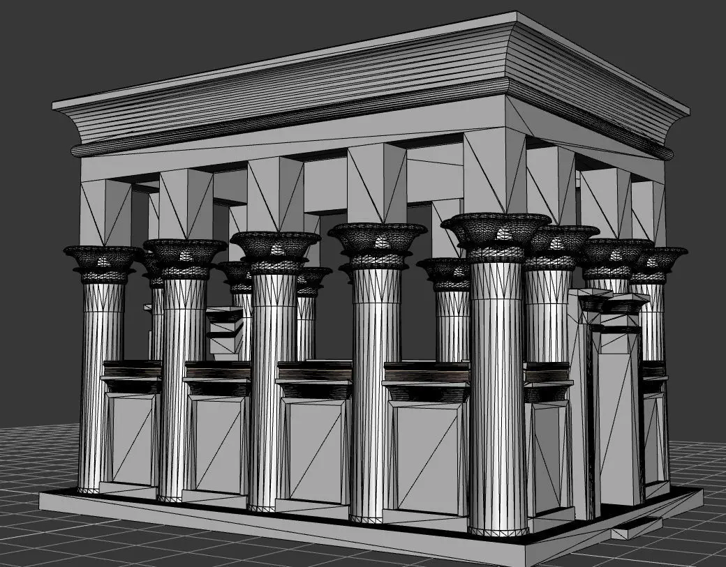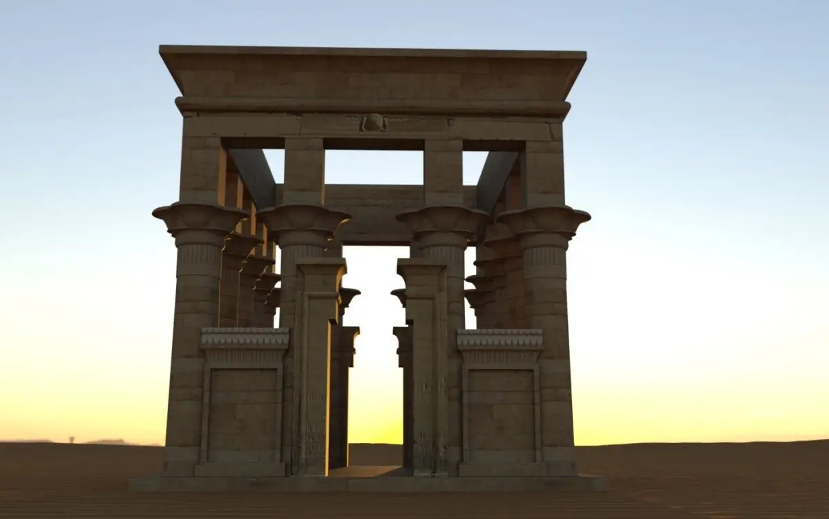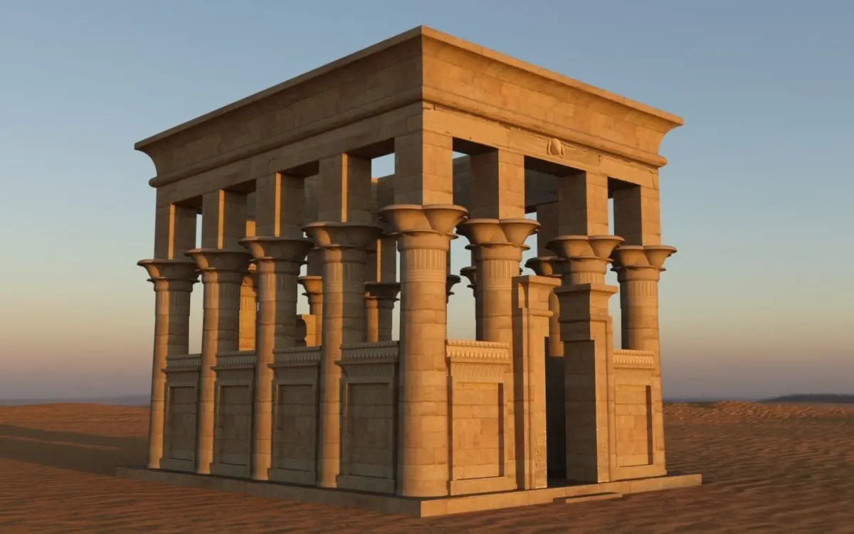 Based on Trajan's Kiosk at the Philae Temple in Egypt. Somewhat restored/finished off.