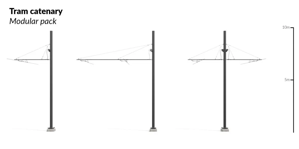 - 3x versions of developed pole: for one tram lane, for two tram lines with pole at the edge and for two tram lines with pole between them