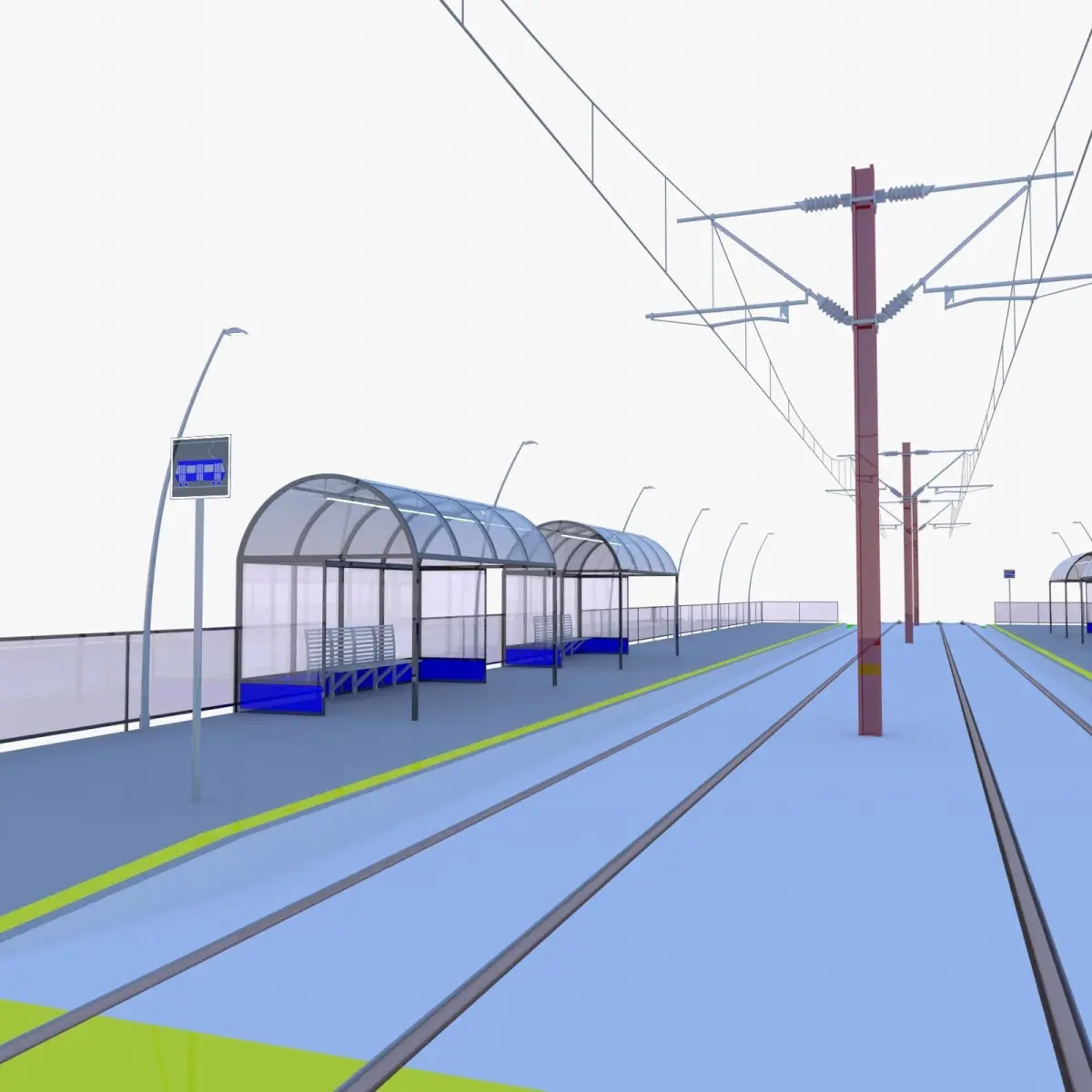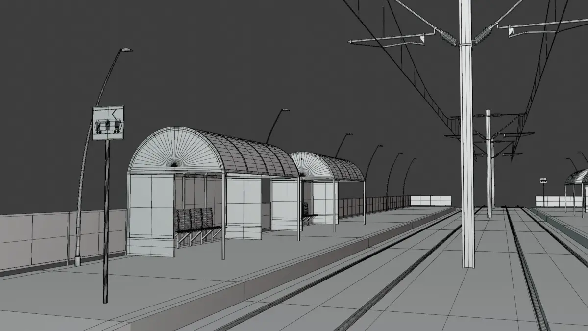 - These are 3D models of tram stops.