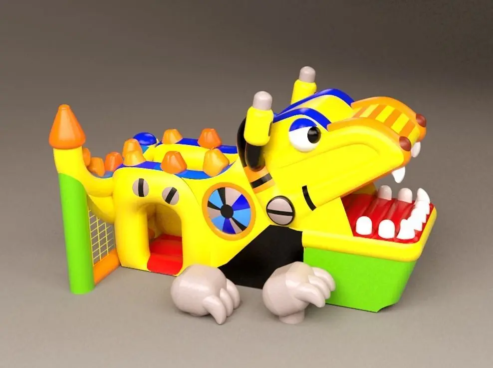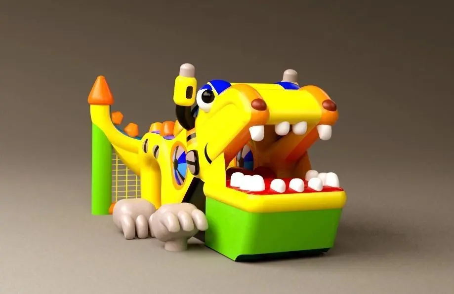 Models are created for the manufacture of children's inflatable attractions. In connection with the production technology, the models are divided into separate objects according to the color of the material. In exported models, the mesh of nearby objects may not match. The file contains the scene to render.