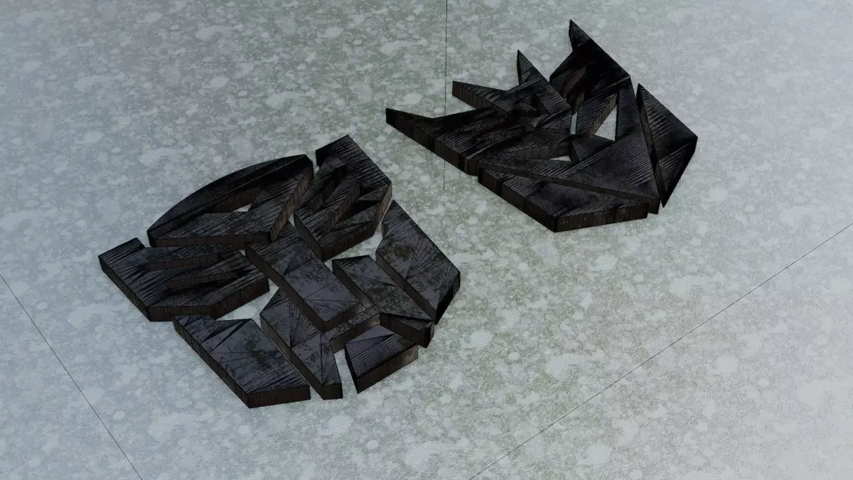 The dots are at their origin in each logo. The texture is available with the Blender Kit plugin. You can change it to your liking, just install it.