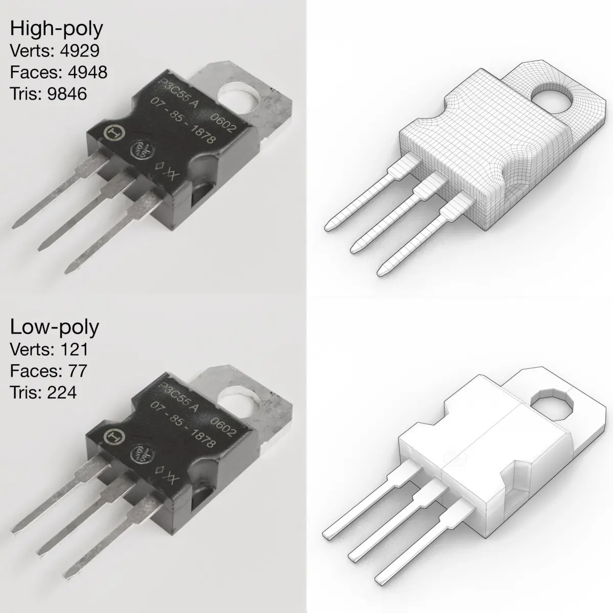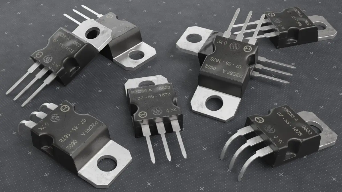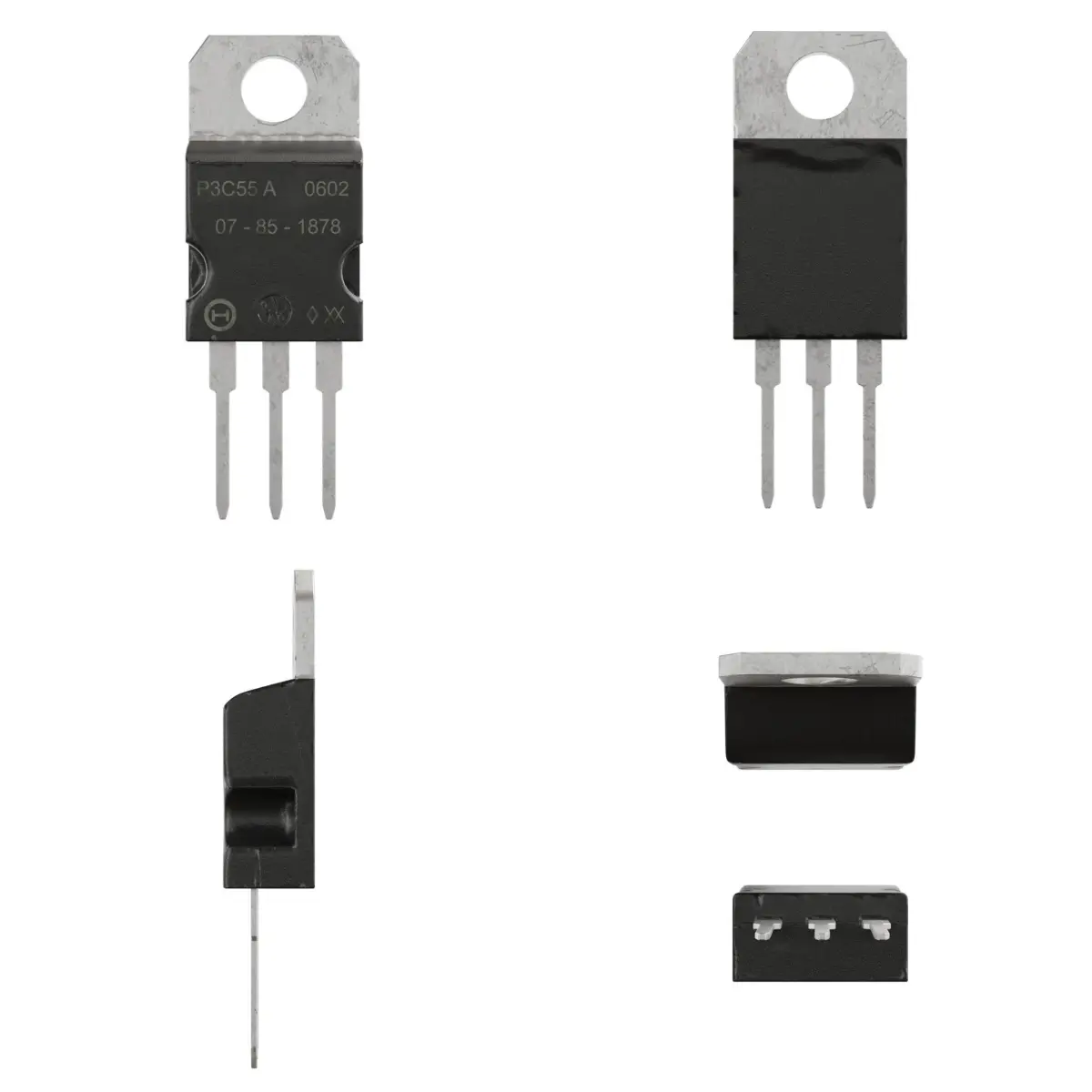 Realistic model of a generic MOSFET transistor. Comes with two variants (straight and curved legs).