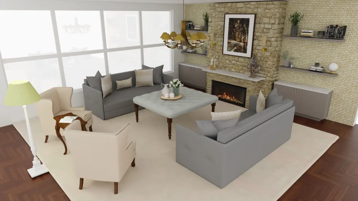 This 3D model of Transitional living room style includes: