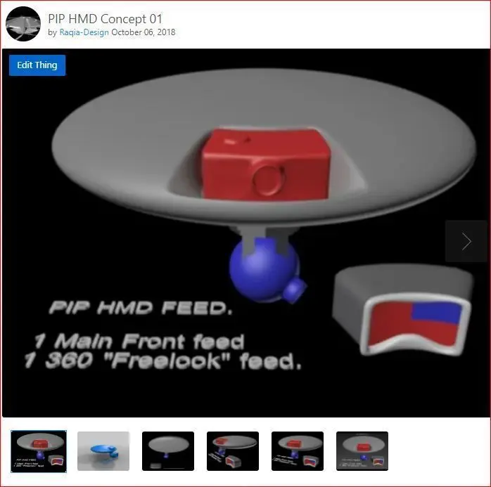 the pilot could then select a direction he wishes to observe, like front, back, left, right..... and the rotating camera would then relay the corresponding images to his hmd. moving the camera locked to the hmd's view like in a apache helicopter would also be very cool of course.