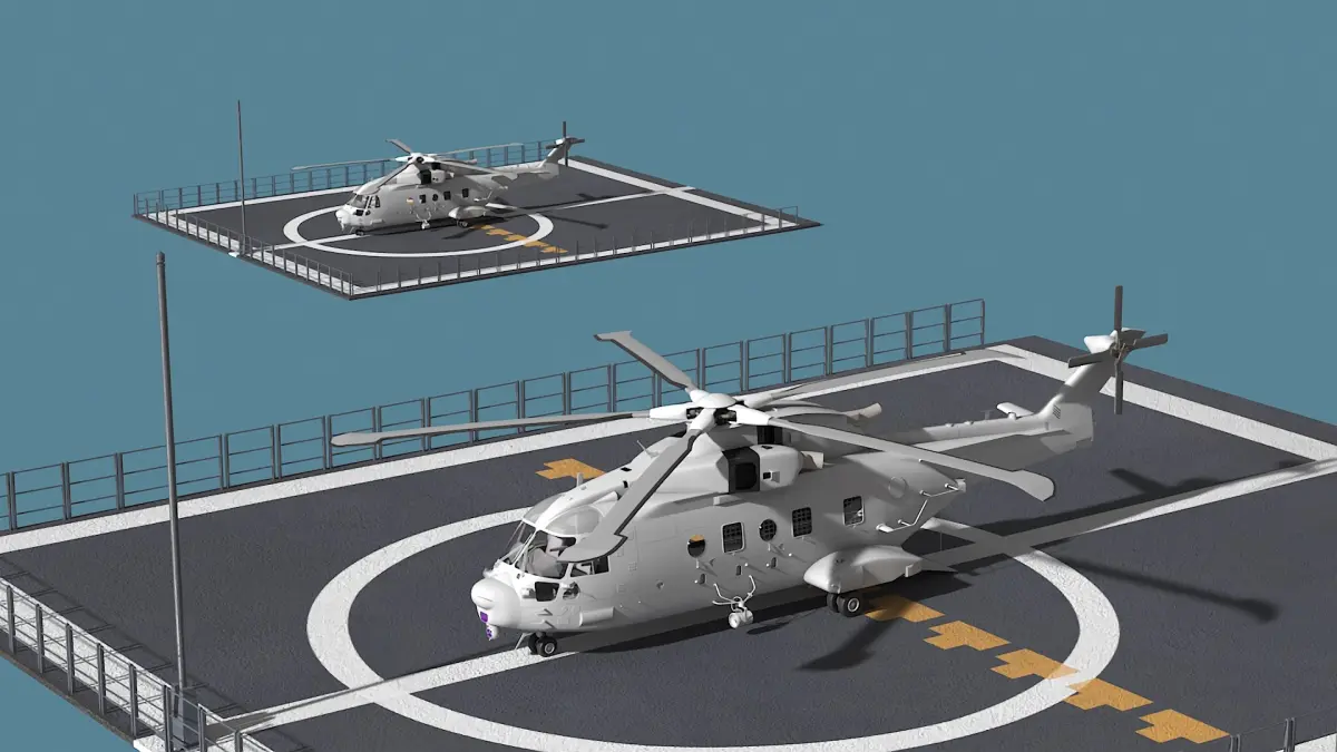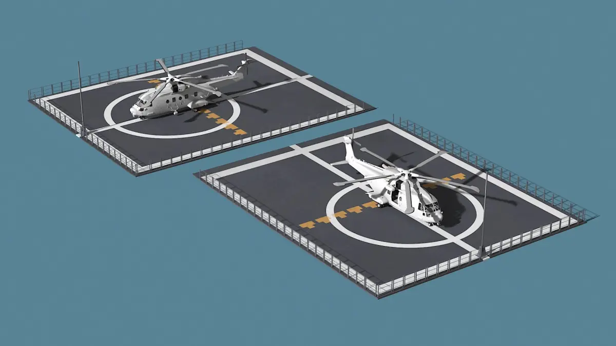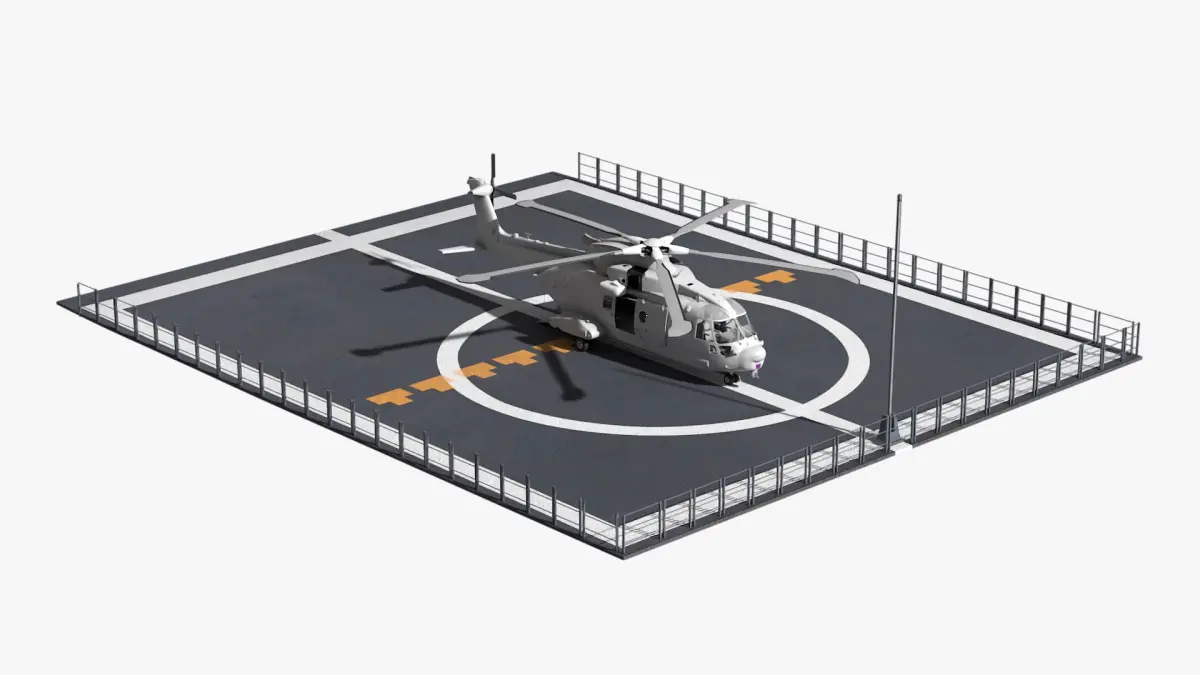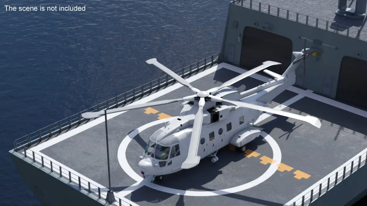 Crafted with precision, this transport helicopter model includes realistic detailing, such as rotors, landing gear, and a rugged exterior finish. The landing pad is designed with surface textures that reflect materials commonly found in military or industrial environments. This model can be easily integrated into animations, games, and simulations, offering a high level of authenticity and versatility for various visualizations.
