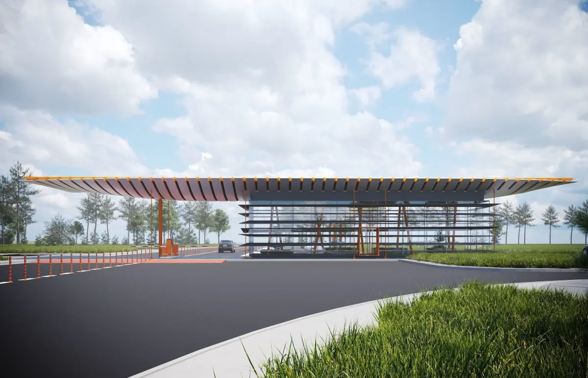 Modern architectured pavilion for higway entrance. Can used for another function