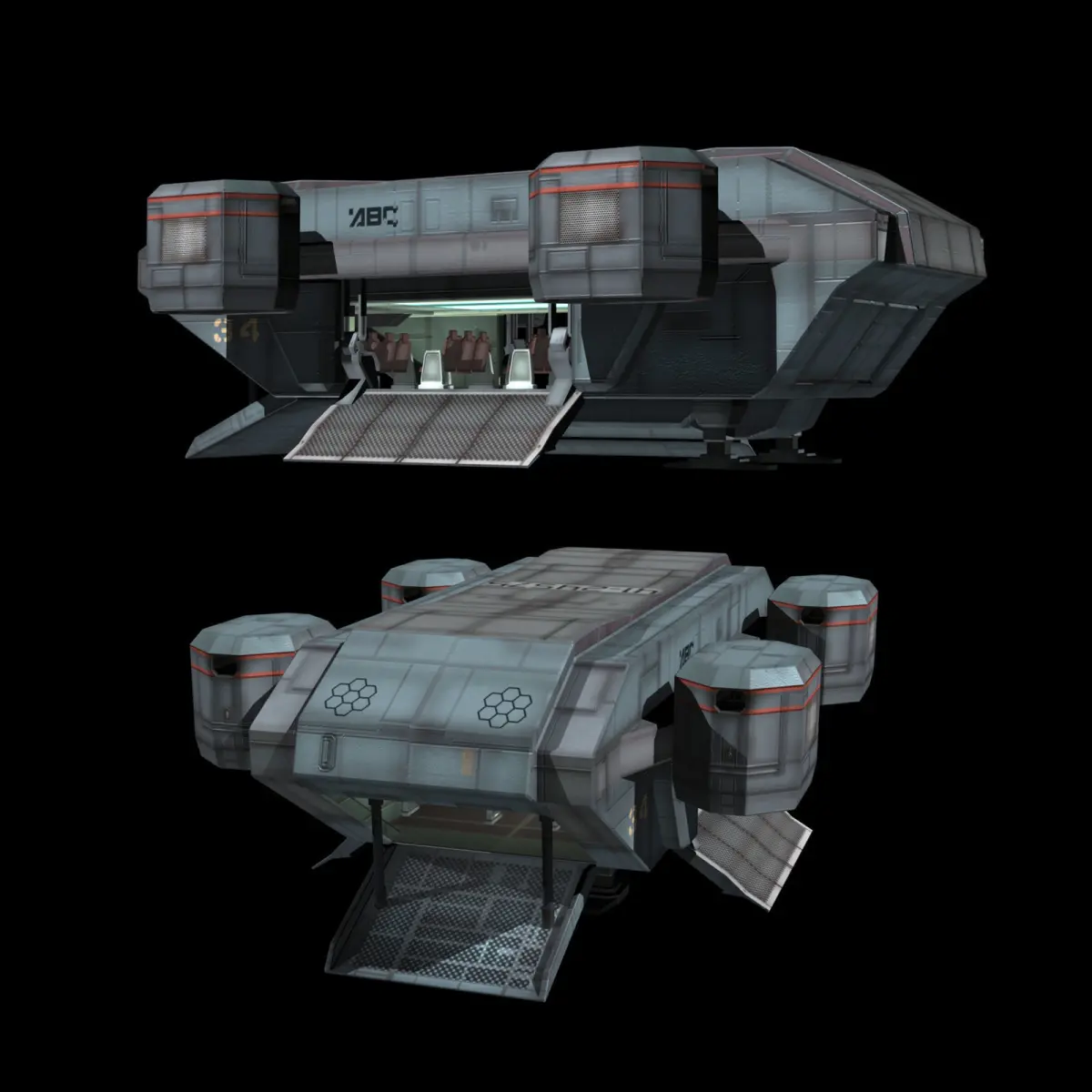 Low poly spacecraft transport Ship for Maya 2015, obj and fbx: