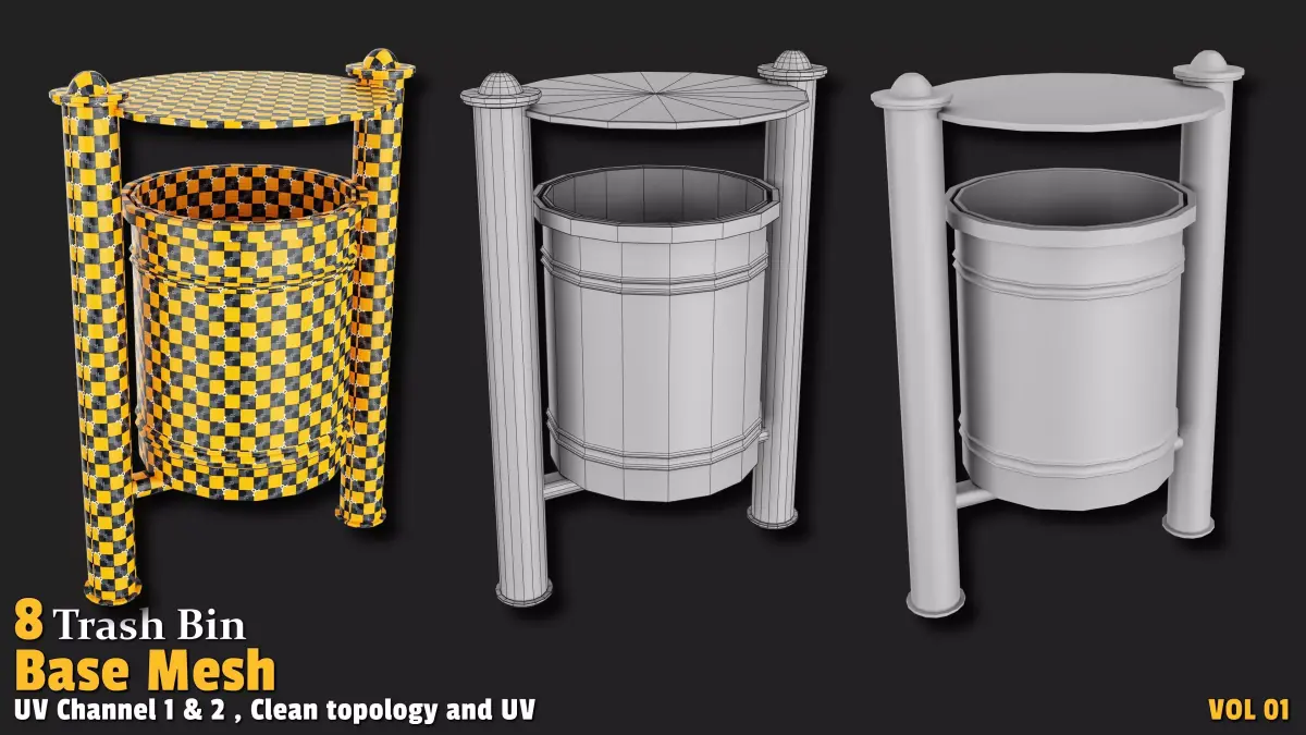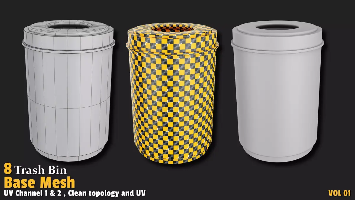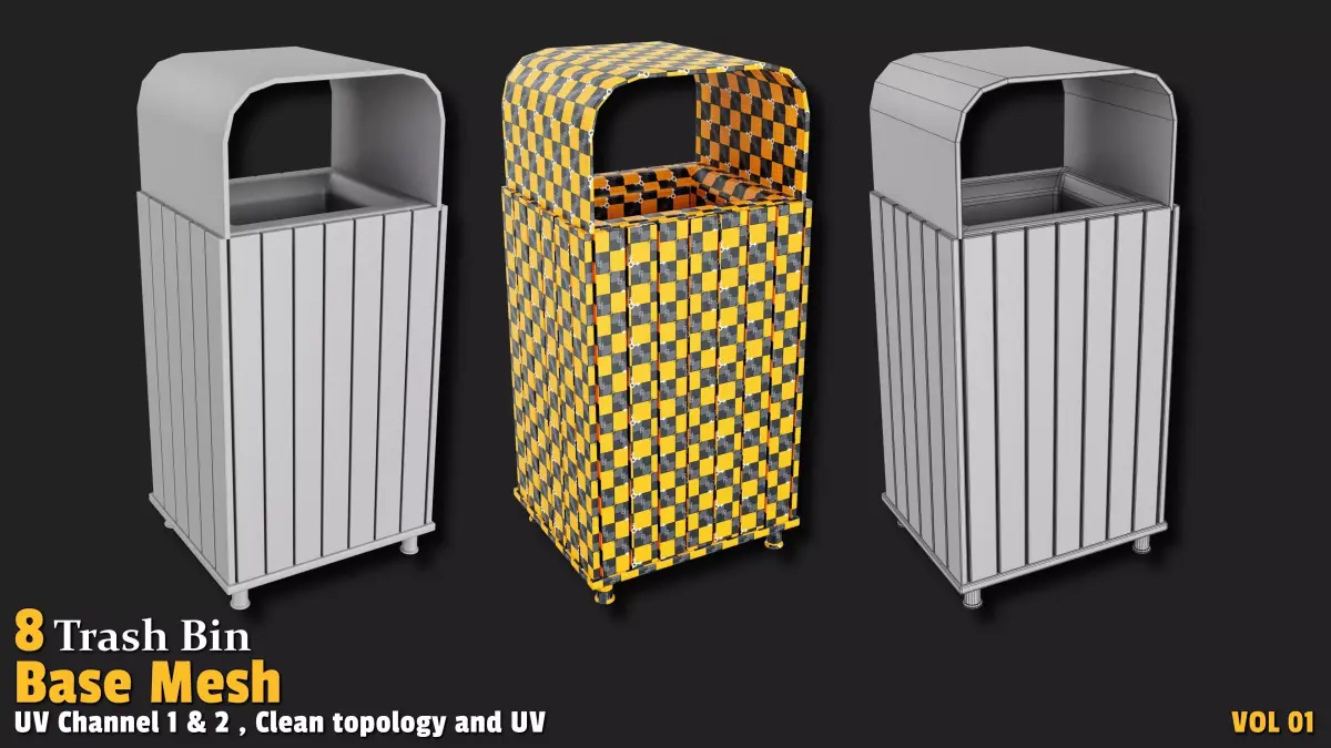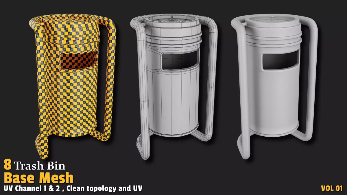 Enhance your 3D projects with this practical collection of 8 trash bin base mesh models! Designed for artists and developers, this Trash Bin set features designs with polygon counts ranging from 1,000 to 3,000, offering an excellent balance of detail and performance. Each model showcases a clean, quad-based topology and is UV-unwrapped with 2 texture channels (Channel 1 and 2), providing a solid foundation for texturing, material application, and customization. Perfect for urban environments, parks, game scenes, or detailed renderings, these assets are highly versatile. Whether you're building a modern city, designing an urban-themed game, or creating professional visualizations, this collection delivers high-quality base meshes ready for seamless integration into your projects.