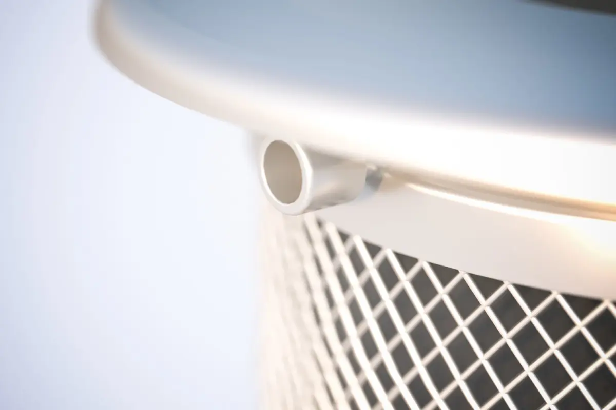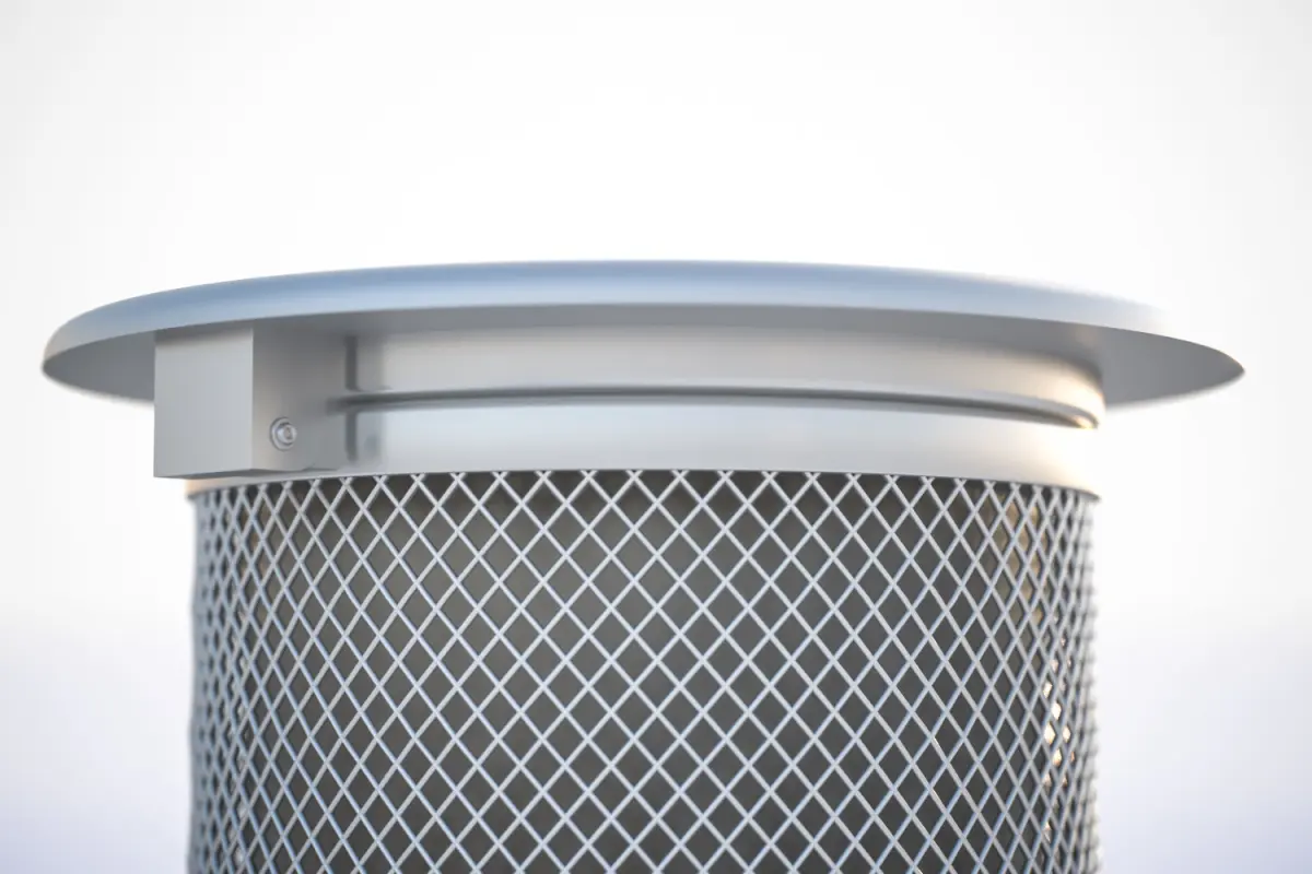 This 3D model includes garbage can with metal upper part and bottom part made of metal mesh. Inside a waste container.