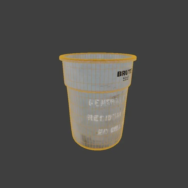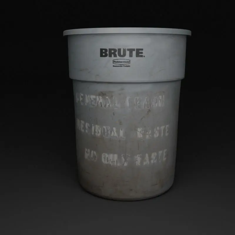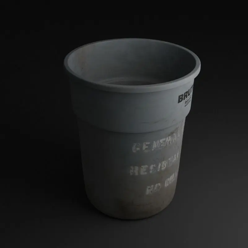 This model is 17,472 faces and the texture is a simple diffuse map (no normals, roughness or specular maps). The trash can is 33high and 26 in diameter at the top.