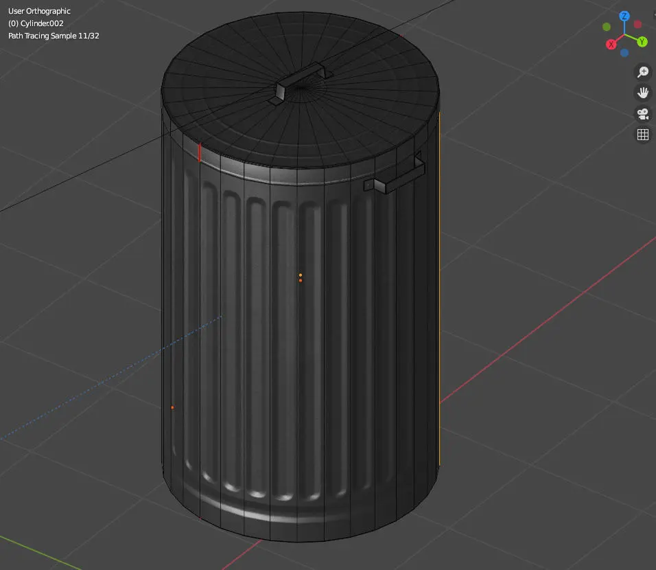 Trash can with PBR textures including color, normal, bump, roughness, and metal. Great for all kinds of projects. The native file was made with Blender 2.9. Export files are available in FBX, OBJ, and GLB formats.