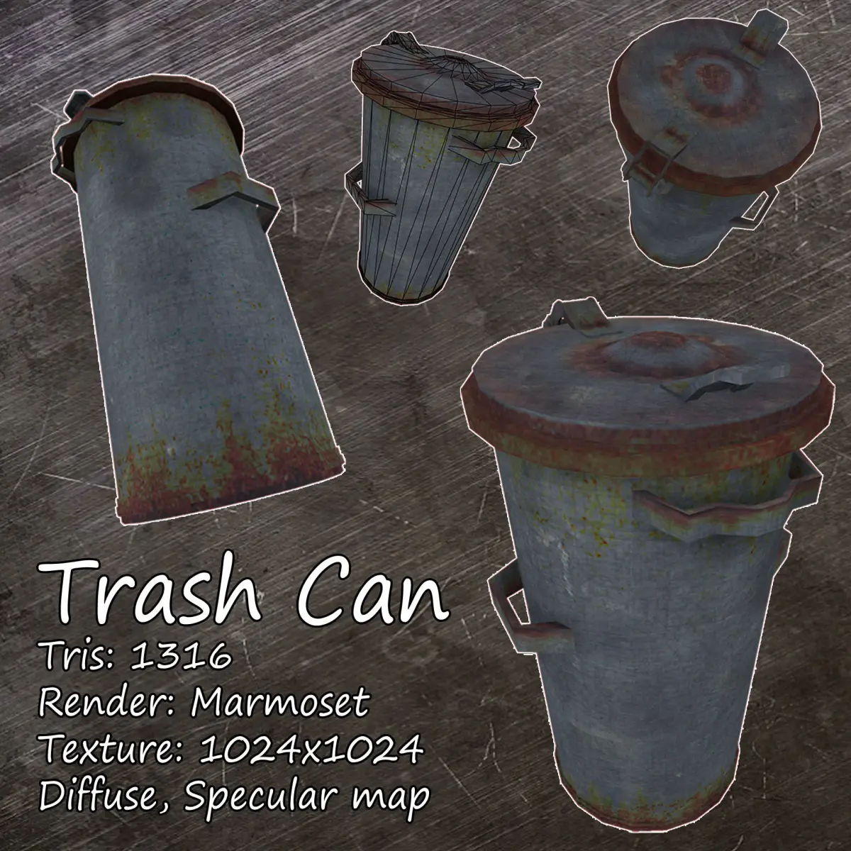 Trash Can:- Poly: 700- Tris: 1316- Texture: 1024x1024 (Diffuse, Specular)