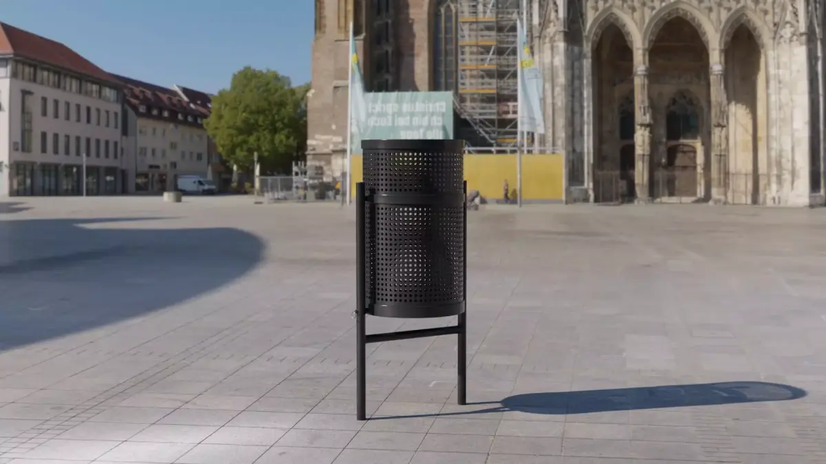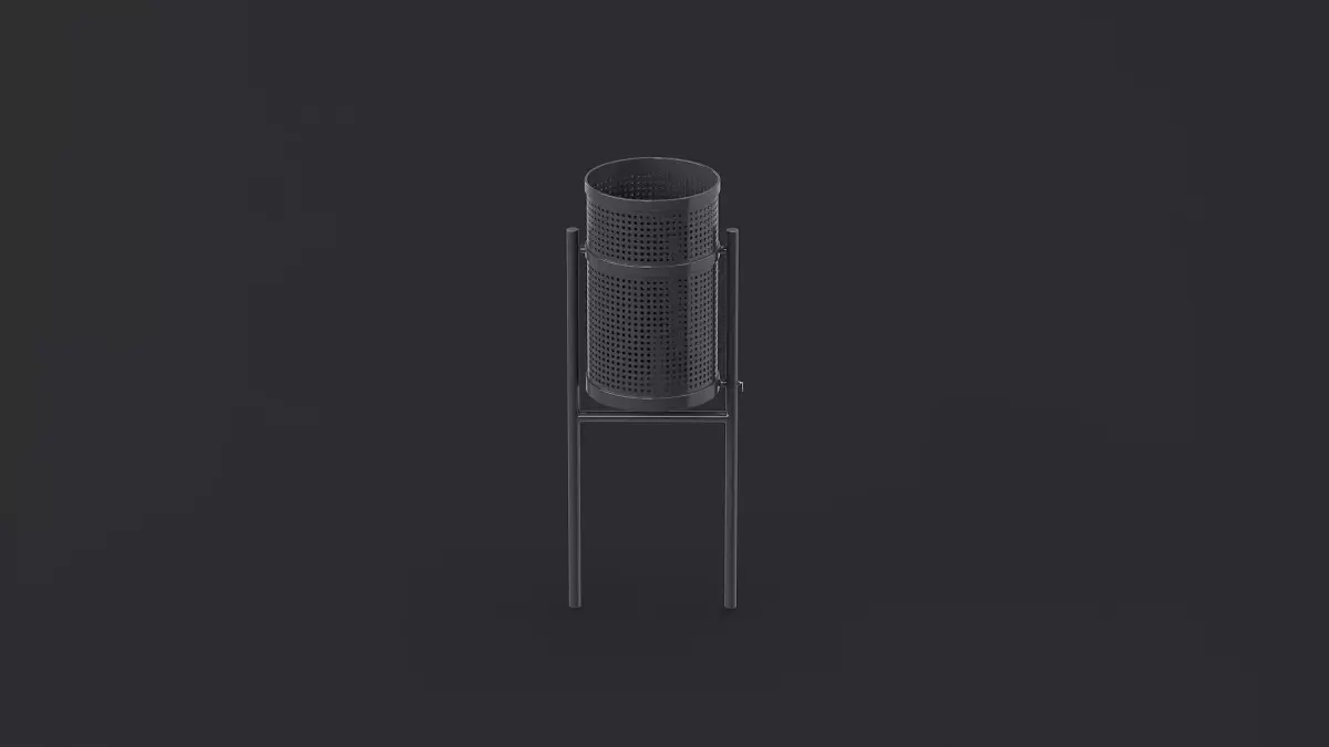 Trash Can Outdoor Metal 01. U-stand mount. Modern urban outdoor enviroment