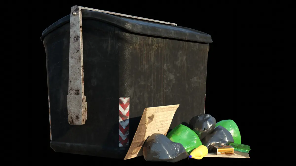Collection of urban dumpster and trash, modeled and textured in Blender ready to use in your scene.