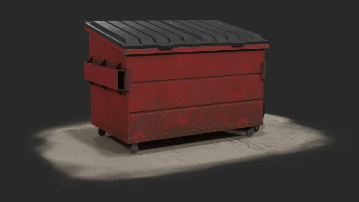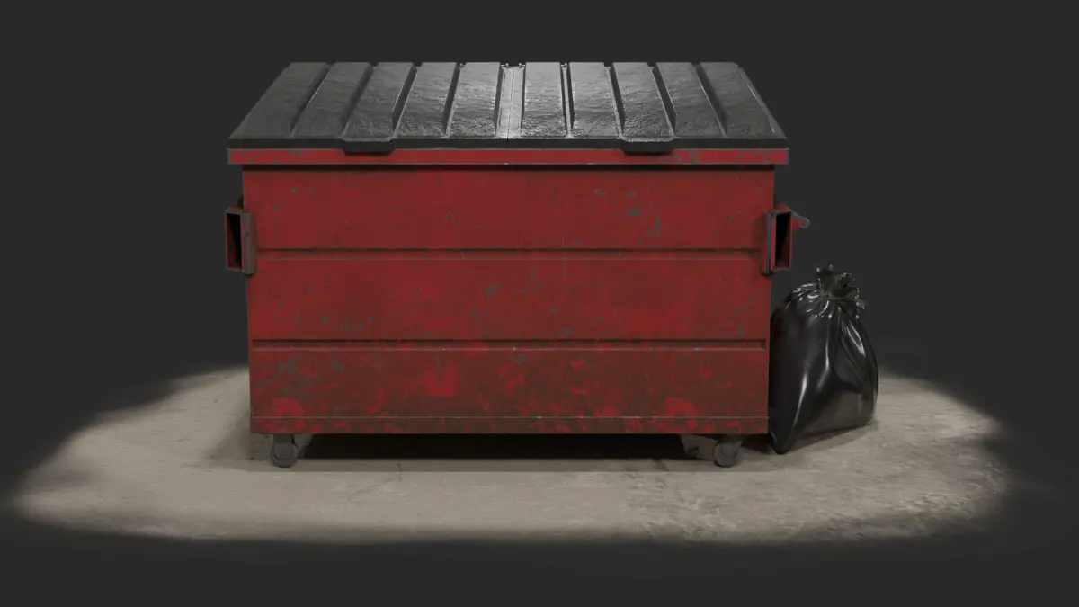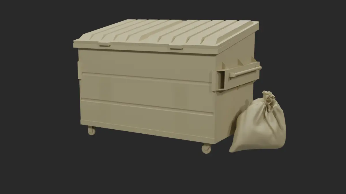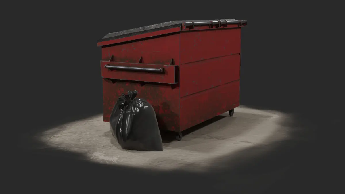 A Front Load Container with plastic trash bag that was made by blender for modeling part and subtance painter for the texture.