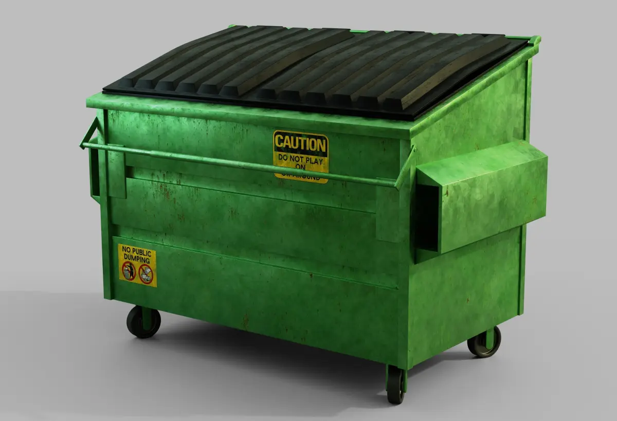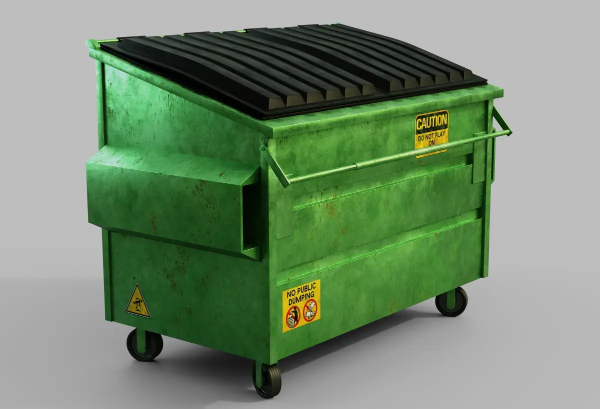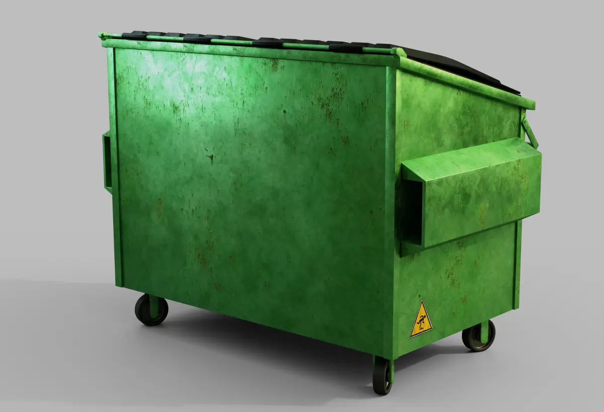 A realistic grungy trash dumpster 3d model, created with Blender. The scene is rendered in Cycles, but can work in Eevee as well.
