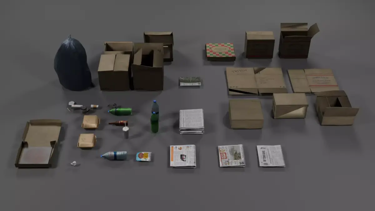 This is a kit of 3D assets of the basic trash items you would find in the street or alleyway