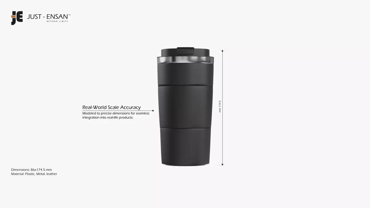 This Travel Mug 3D model combines modern design and realistic detail, perfect for product visualization and branding scenes. Modeled with clean SubD geometry, it features a sleek matte black body, chrome ring accents, and a functional flip-top lid for spill-free convenience. The model uses PBR materials to achieve lifelike reflections and surface depth. Ideal for packaging renders, promotional visuals, and realistic interior scenes.