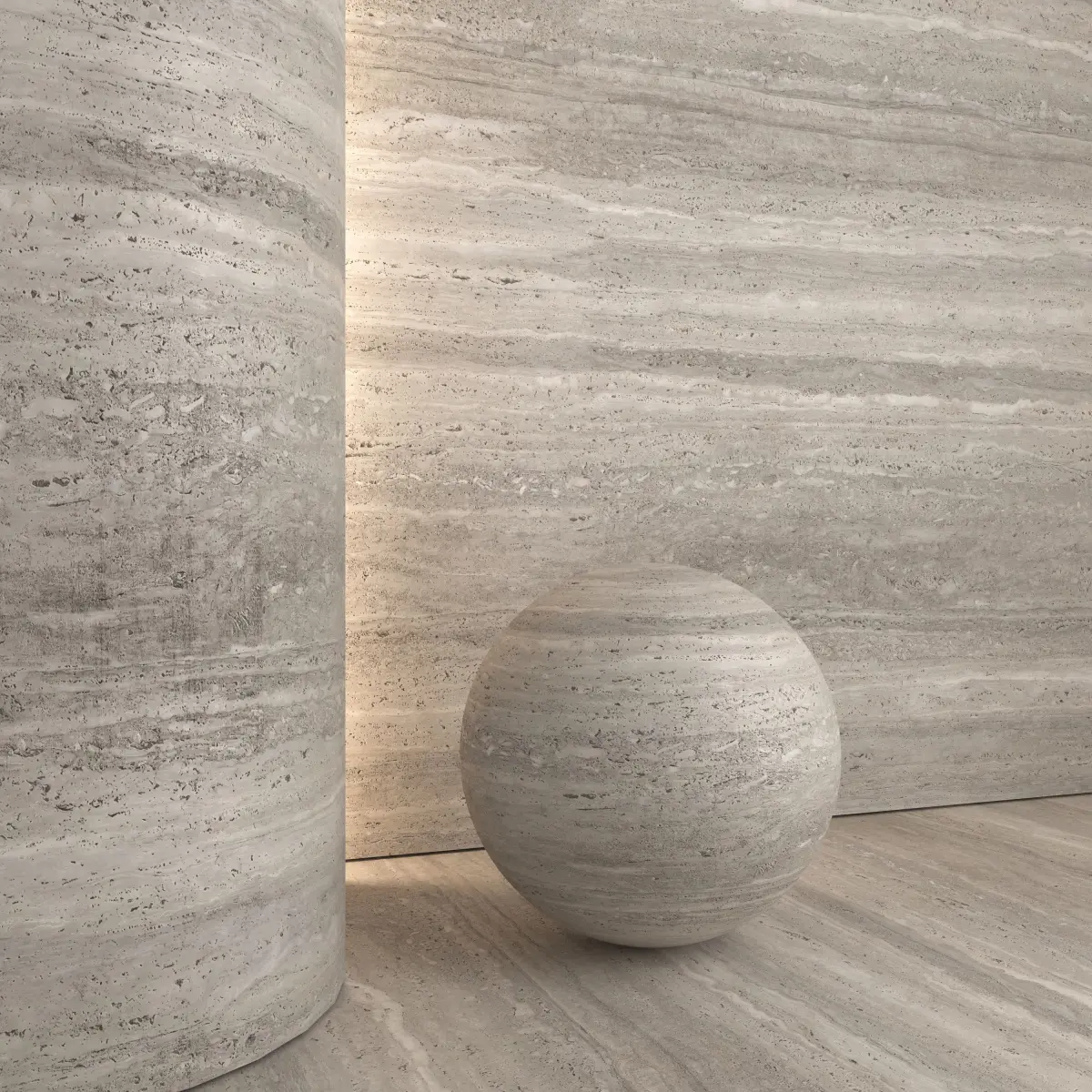 Natural stone Travertine.Seamless texture, material and 3d model of tiles of different sizes.Detailed enough for close-up rendering.PBR textures. Resolution 16384x16384 pixels.