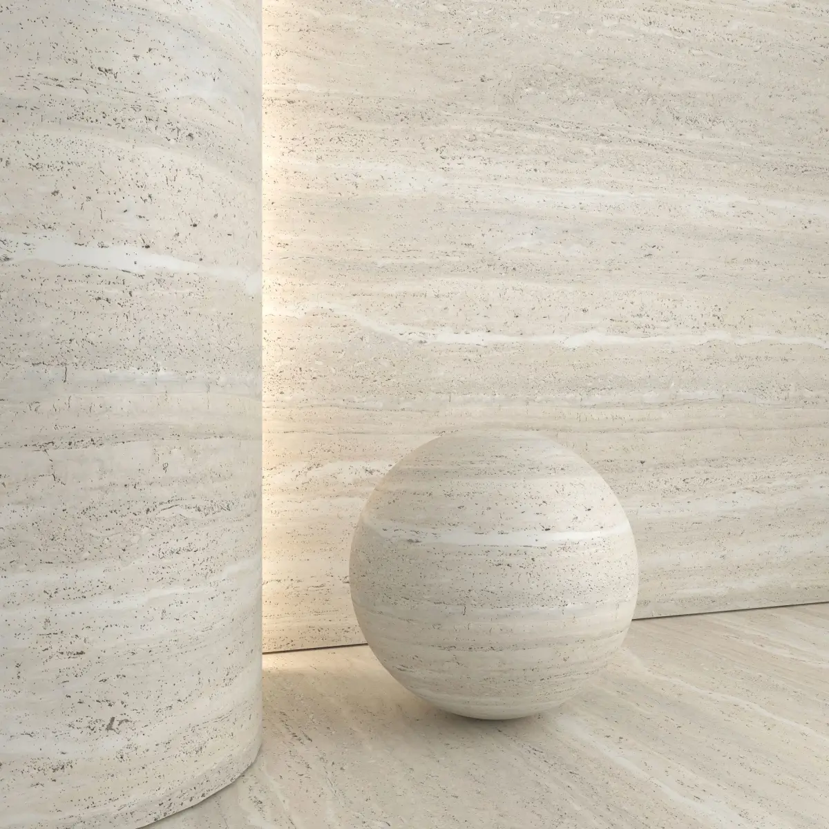 Natural stone Travertine.Seamless texture, material and 3d model of tiles of different sizes.Detailed enough for close-up rendering.PBR textures. Resolution 16384x16384 pixels.